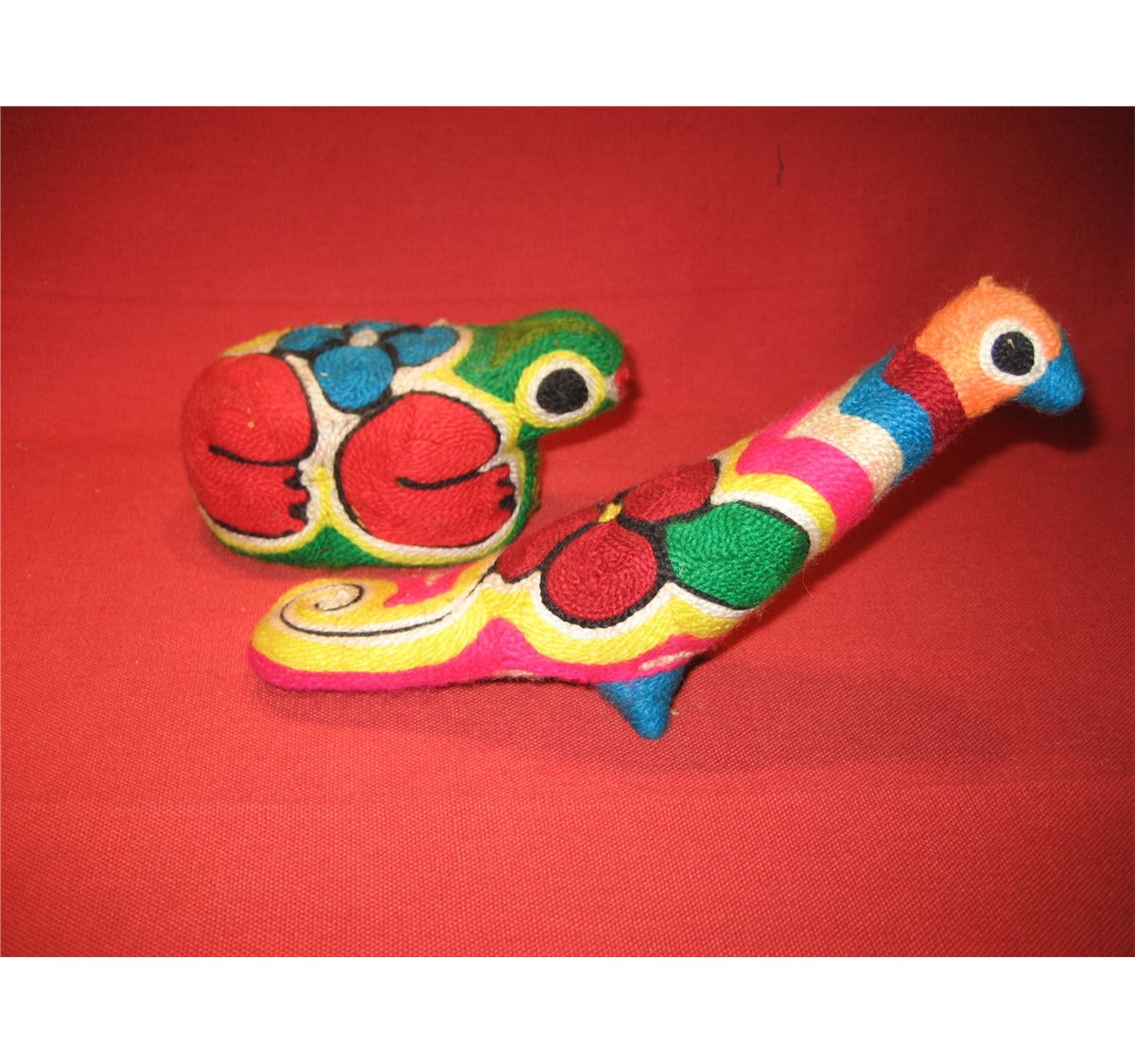 (2) ARTISAN MEXICAN SPAINISH DECORTIVE COLORED YARN ANIMALS BIRD FROG
