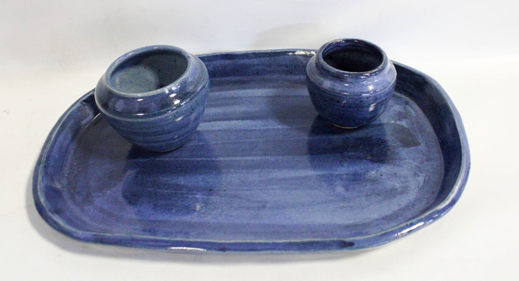 ARTISAN POTTERY TRAY & VASES- SET OF 3
