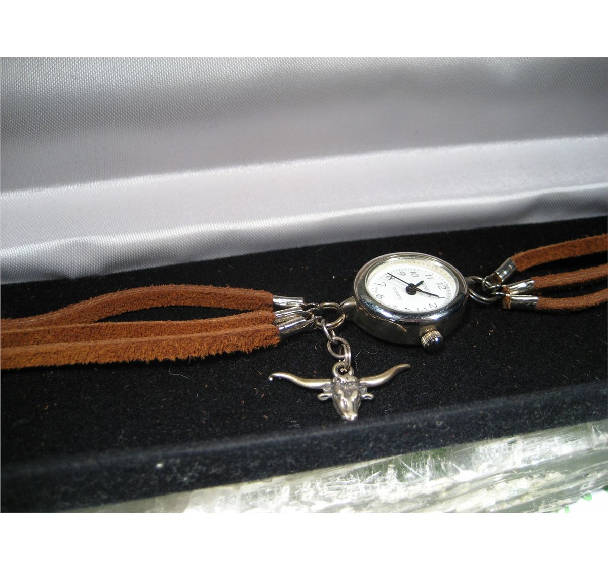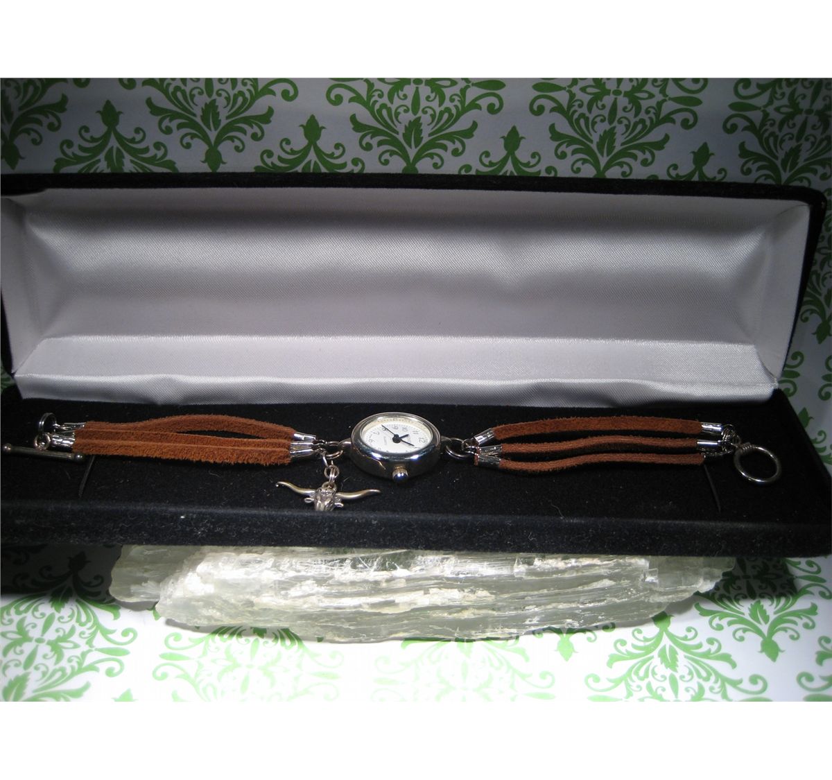 (1) ARTISAN TEXAS LONGHORN WATCH STERLING SILVER CHARM LEATHER CORD BAND