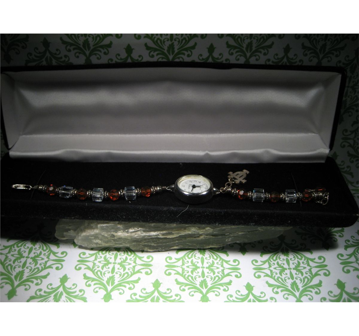 (1) ARTISAN TEXAS LONGHORN WATCH STERLING SILVER UT CHARM BEADED CRYSTALS BAND