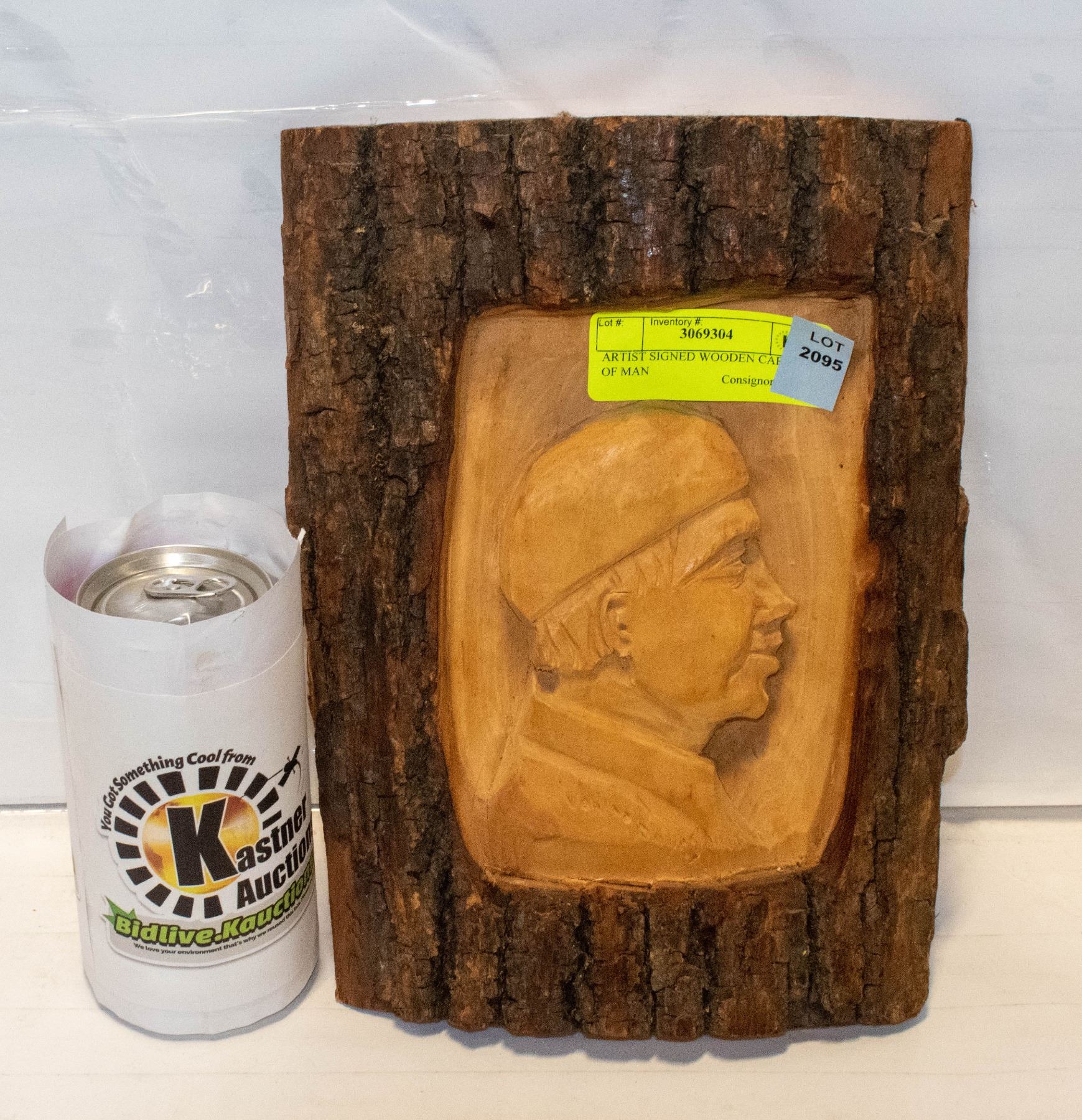 ARTIST SIGNED WOODEN CARVING OF MAN