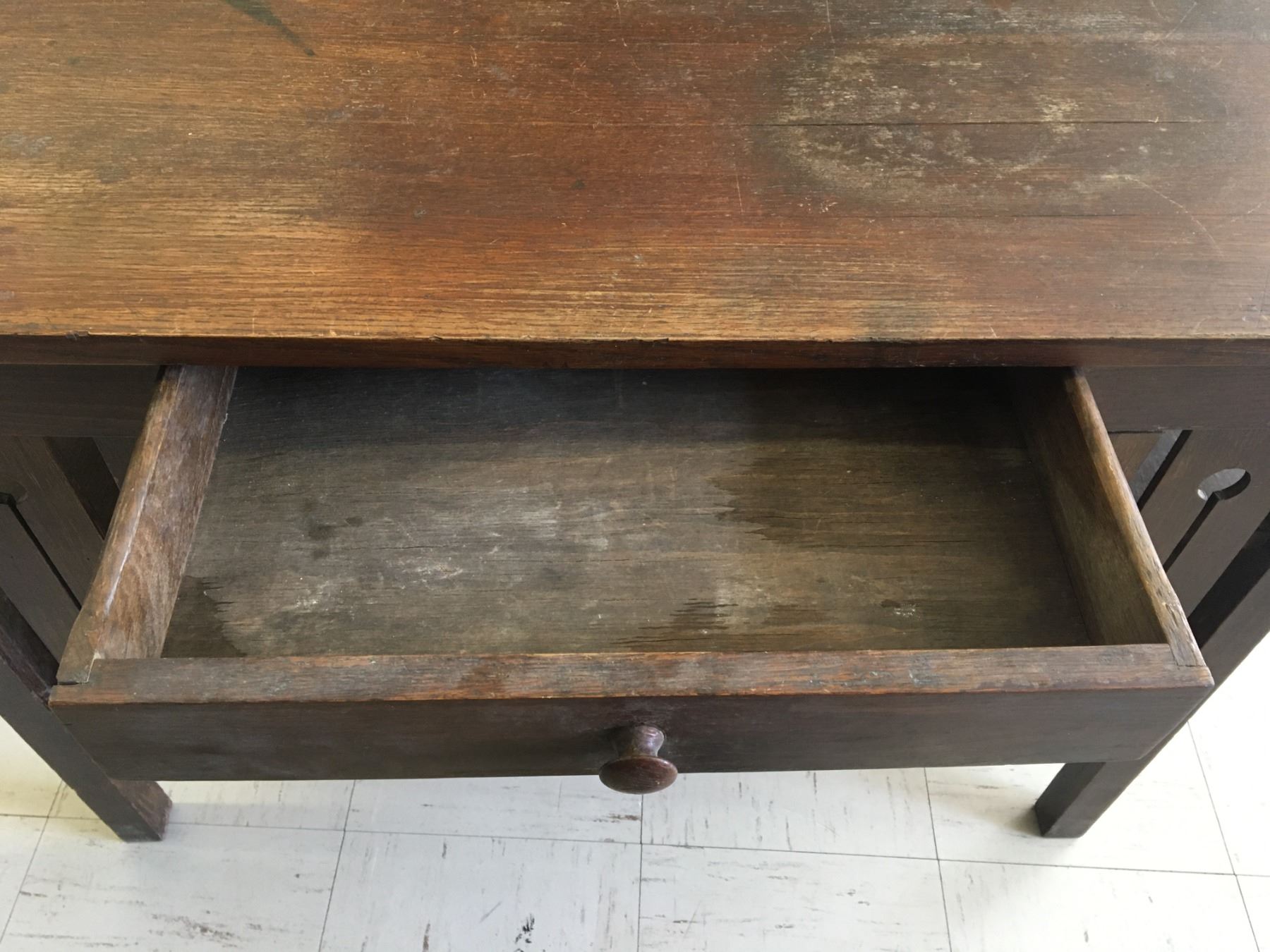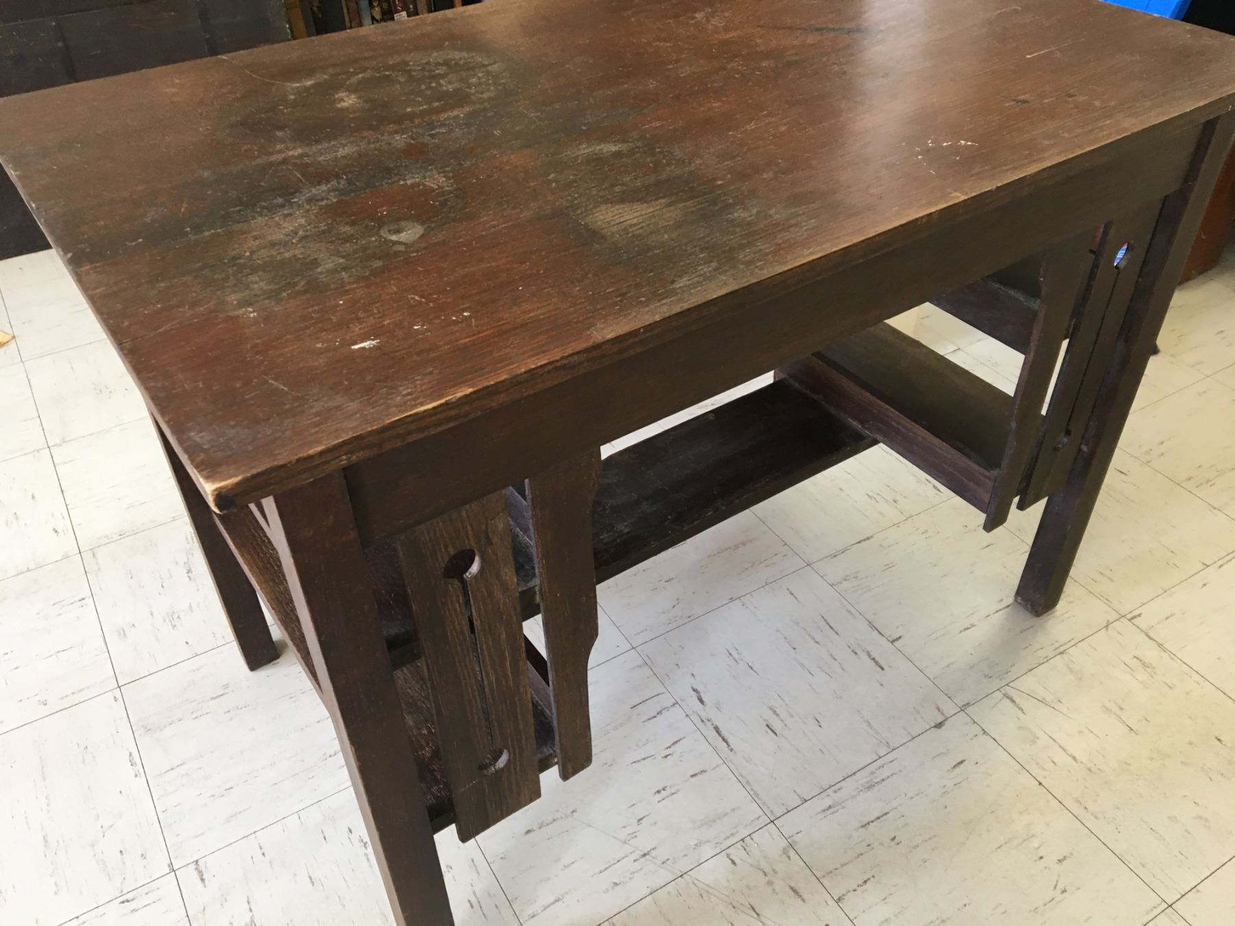 ARTS AND CRAFTS STYLE WOODEN DESK NEEDS SOME WORK 42" x 26" STANDS 30" TALL