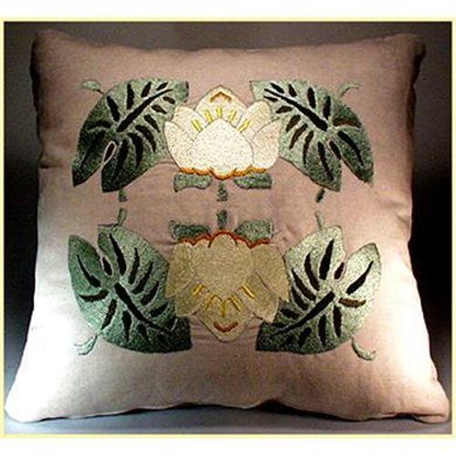 <tr><td>Title:ARTS & CRAFTS EMBROIDERED CREAM WATERLILY PILLOW</td></tr>