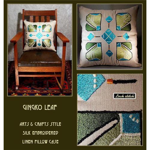 <tr><td>Title:ARTS & CRAFTS MISSION EMBROIDERED GINGKO PILLOW</td></tr>