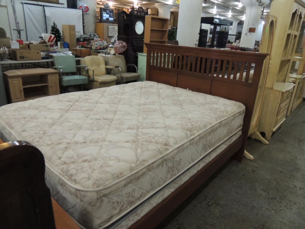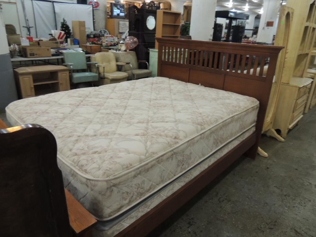 ARTS & CRAFTS WOODEN DECORATIVE CONTEMPORARY BEDFRAME, QUEEN SIZE FRAME, SIMPLE DESIGN AS SHOWN SEE PHOTO FOR MORE DETAILS.