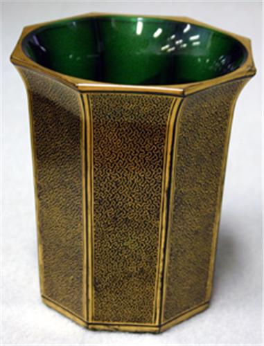 VAS, MÄRKT JOSEPHINEN HÜTTE, NÄTMÖNSTRAD GULDDEKOR PÅ GRÖNT GLAS, C. 1900, H14