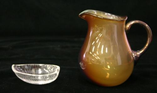 BRINGARE, BRUNTONAT GLAS, SIGN. OLLE ALBERIUS, ORREFORS, H15, FAT, LÖVFORMAT, SIGN. T.W, IITTALA, L10 (2)