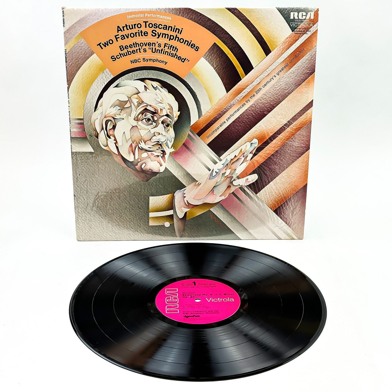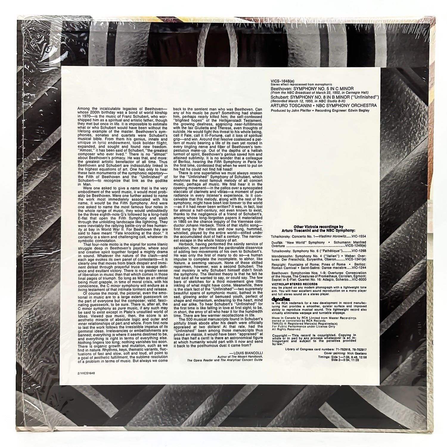 #9545 - FROM PRIVATE COLLECTION OF CLASSICAL/OPERA RECORDS. VINYL LP RECORD ALBUM. CLASSICAL, ROMANTIC, TWO FAVORITE SYMPHONIES - BEETHOVEN’S FIFTH - SCHUBERT’S “UNFINISHED”. IMMORTAL PERFORMANCES - NBC SYMPHONY, RCA VICTROLA VICS-1648(E)