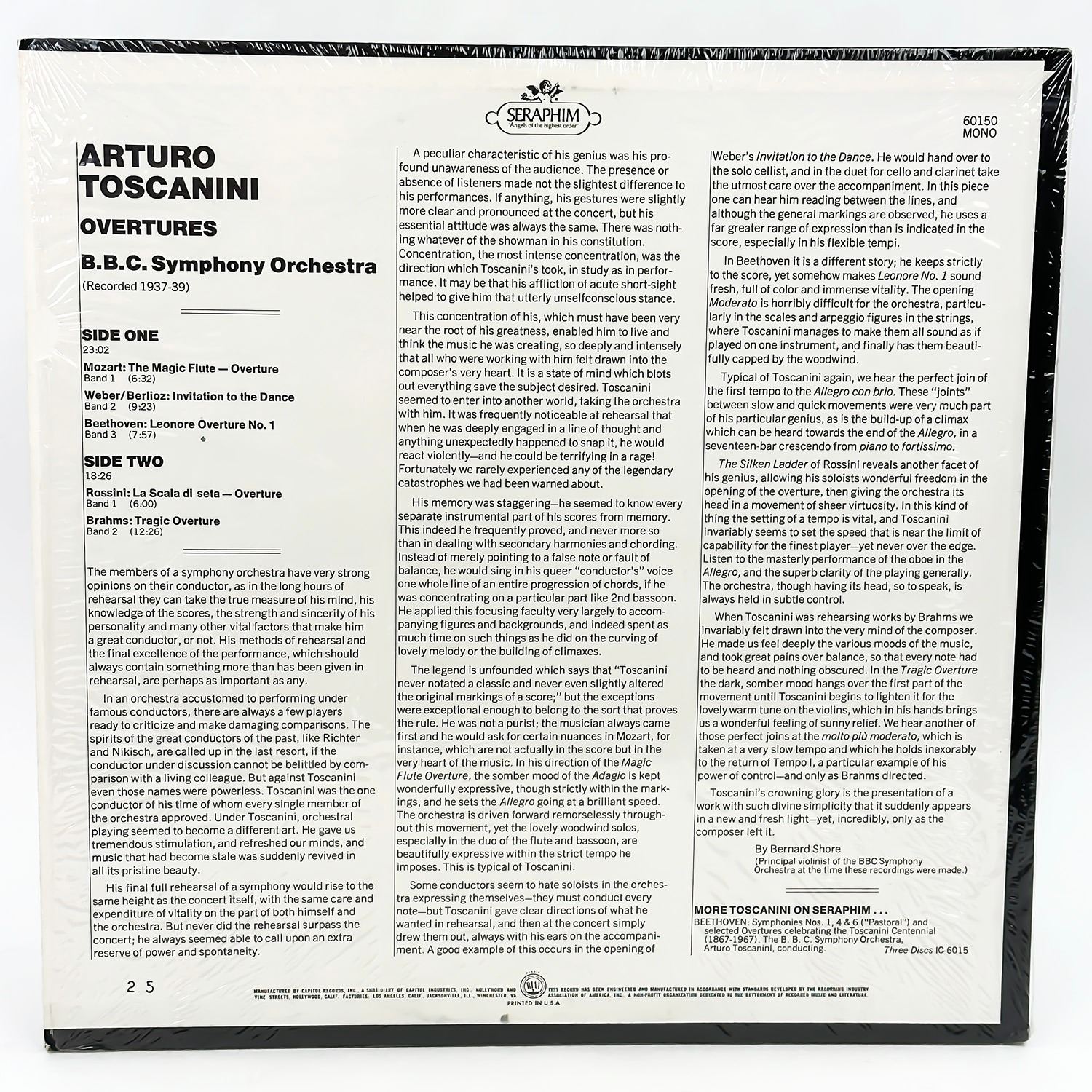 #9542 - FROM PRIVATE COLLECTION OF CLASSICAL/OPERA RECORDS. VINYL LP RECORD ALBUM. ROMANTIC, CLASSICAL, ARTURO TOSCANINI - OVERTURES - BEETHOVEN - MOZART. SERAPHIM RECORDS 60150
