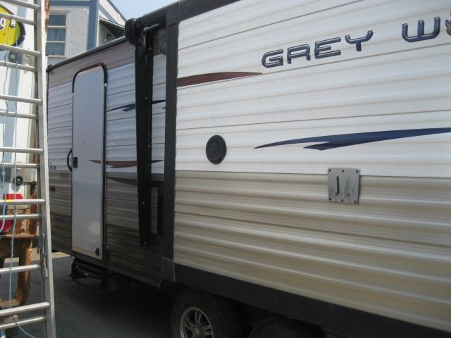'AS IS' GREY WOLF LTD. 26' TRAVEL TRAILER W/2 SLIDES, SLIDES DON'T HAVE MOTORS (REPO-ALBERTA REGISTRATION)