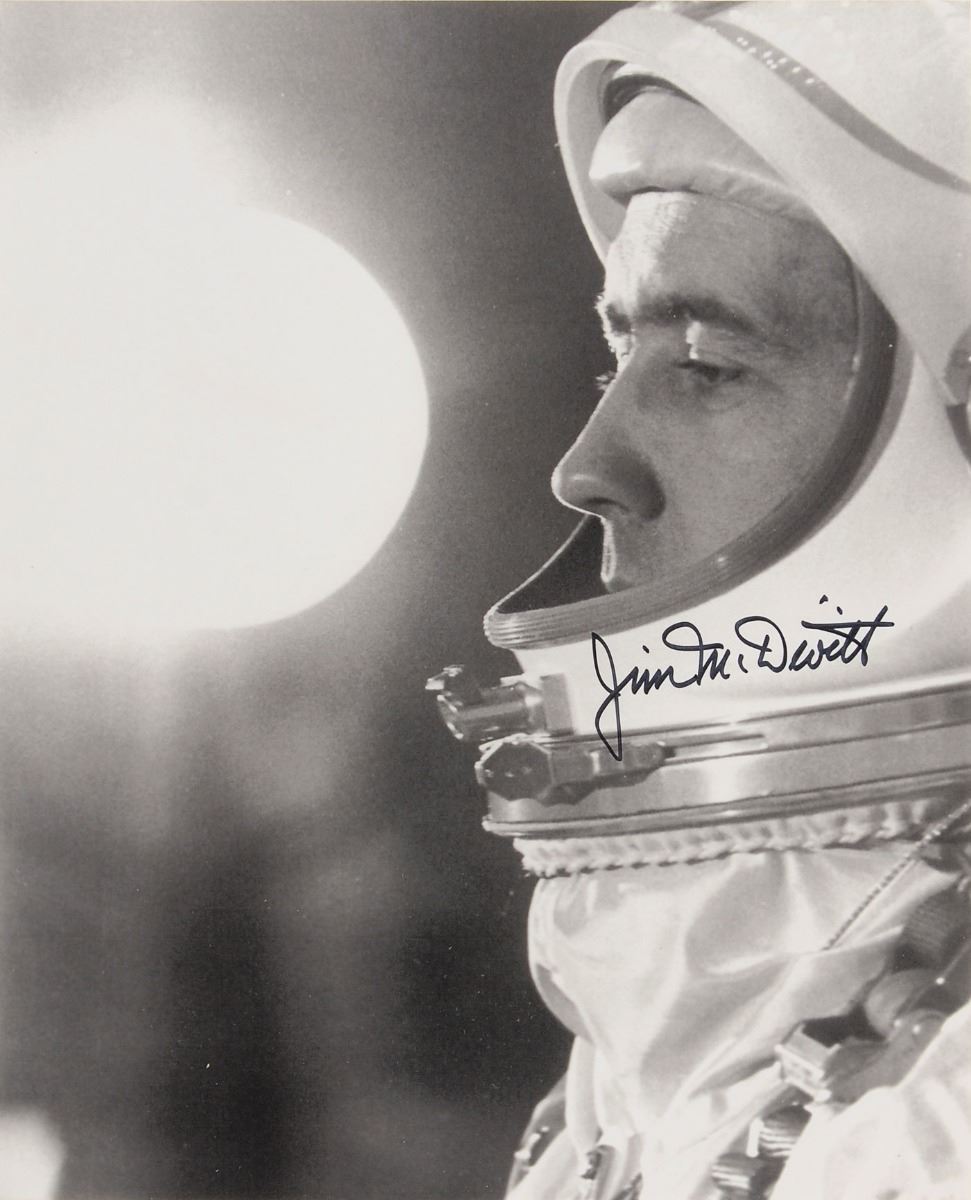 Astronaut Scholarship Foundation collection of eleven color satin-finish photos as a part of membership to the 2005 Astronaut Autograph Club, 8 x 10 and 10 x 8, individually signed in felt tip by the astronaut pictured, with some adding their mission designation, including: Buzz Aldrin, Jerry Carr, Bill Pogue, Jim McDivitt, Dick Covey, Rusty Schweickart, Jack Lousma, Fred Haise, Robert ‘Hoot’ Gibson, Alan Bean, and Norman Thagard. Includes the original Astronaut Autograph Club box, as well as an unsigned photo of Gordon Cooper. In overall very fine condition. Each signed photo is accompanied by an Astronaut Autograph Club letter bearing a preprinted signature.