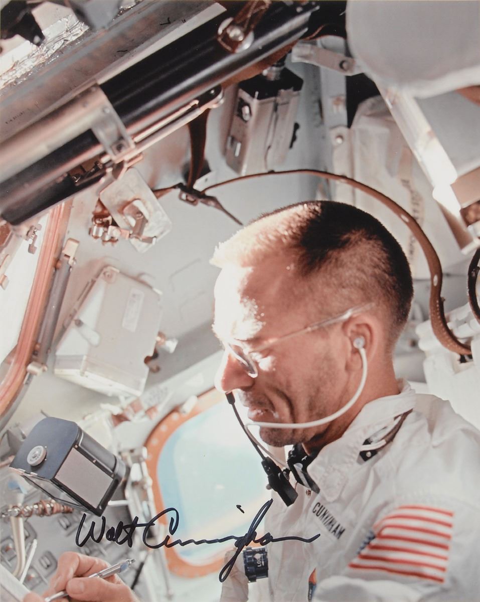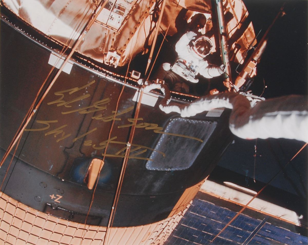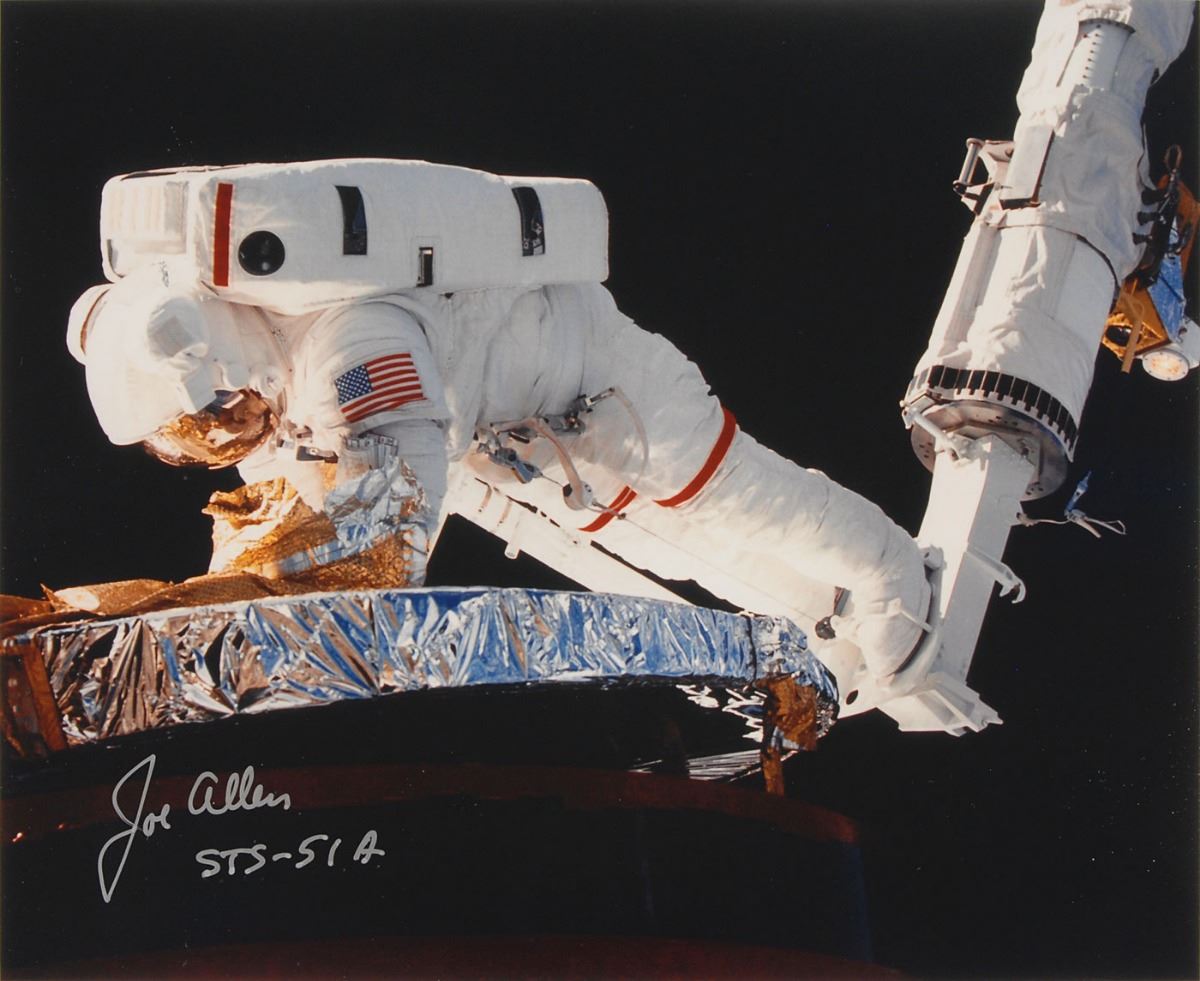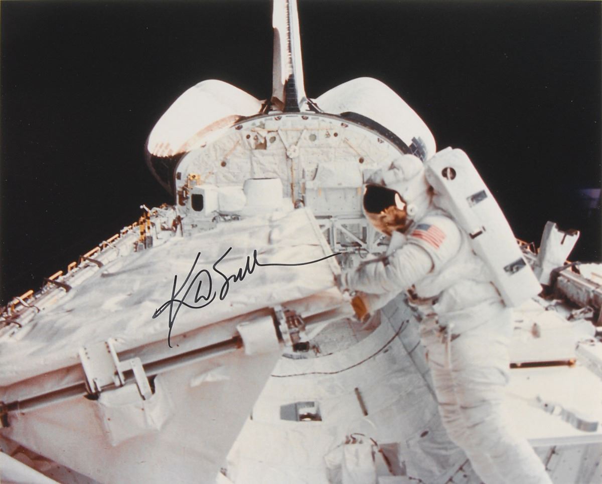 Astronaut Scholarship Foundation collection of twelve color satin-finish photos as part of membership to the 2006 Astronaut Autograph Club, 8 x 10 and 10 x 8, individually signed in felt tip by the astronaut pictured, with some adding their mission designation, including: Story Musgrave, Ed Gibson, Charles F. Bolden, Jr., Gene Cernan, Joe Kerwin, James Lovell, Kathy Sullivan, Sally Ride, Bruce McCandless II, Joe Allen, Fred Gregory, and Walt Cunningham. Includes the original Astronaut Autograph Club box. In overall very fine condition. Each photo is accompanied by an Astronaut Autograph Club letter bearing a preprinted signature.