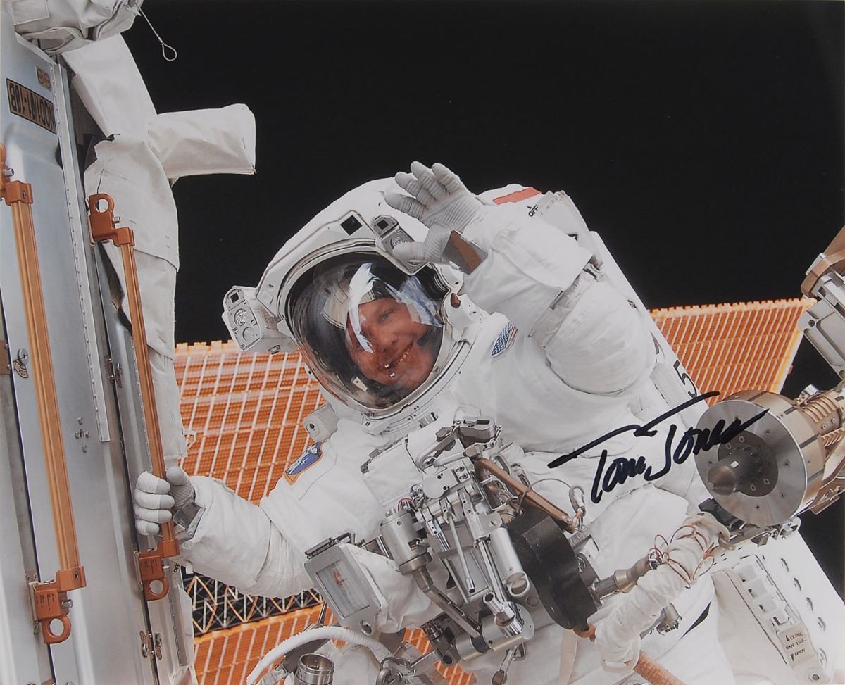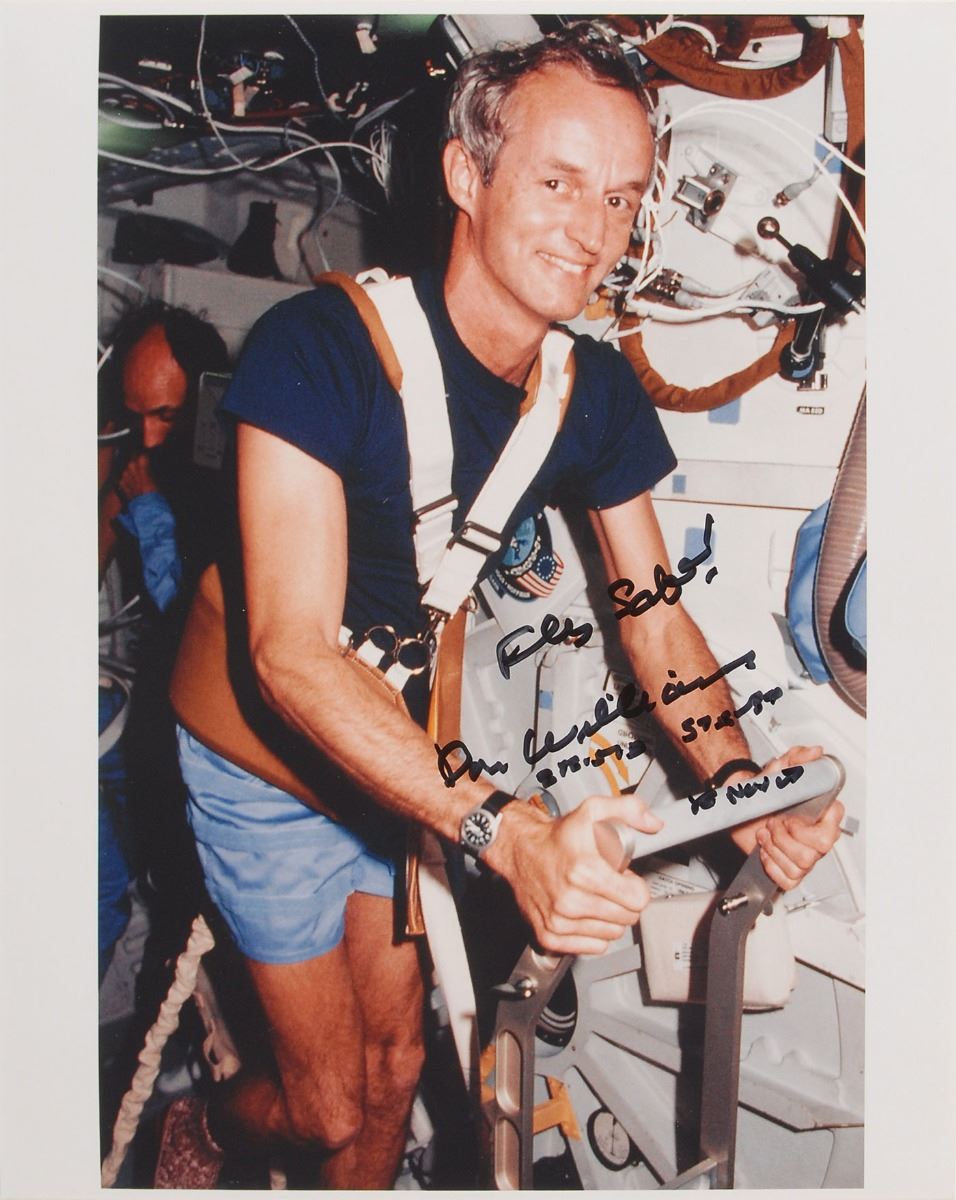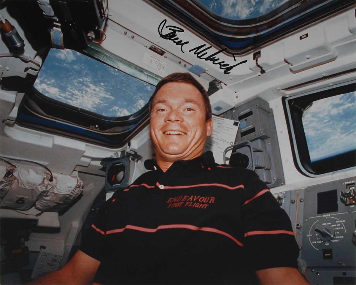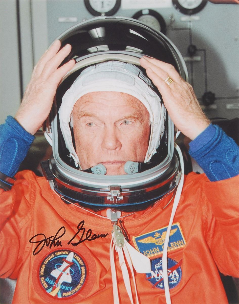 Astronaut Scholarship Foundation collection of twelve color satin-finish photos as part of membership to the 2007 Astronaut Autograph Club, 8 x 10 and 10 x 8, individually signed in felt tip by the astronaut pictured, with some adding their mission designation, including: John Blaha, Tom Jones, Eileen Collins, Rhea Seddon, Bruce Melnick, Jon McBride, Kathy Thornton, John Glenn, Charles ‘Sam’ Gemar, Don Williams, Brian Duffy, and Mark C. Lee. Includes the original Astronaut Autograph Club box. In overall very fine condition. Each photo is accompanied by an Astronaut Autograph Club letter bearing a preprinted signature.