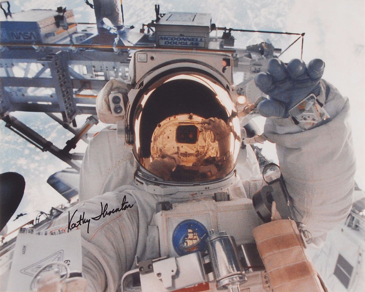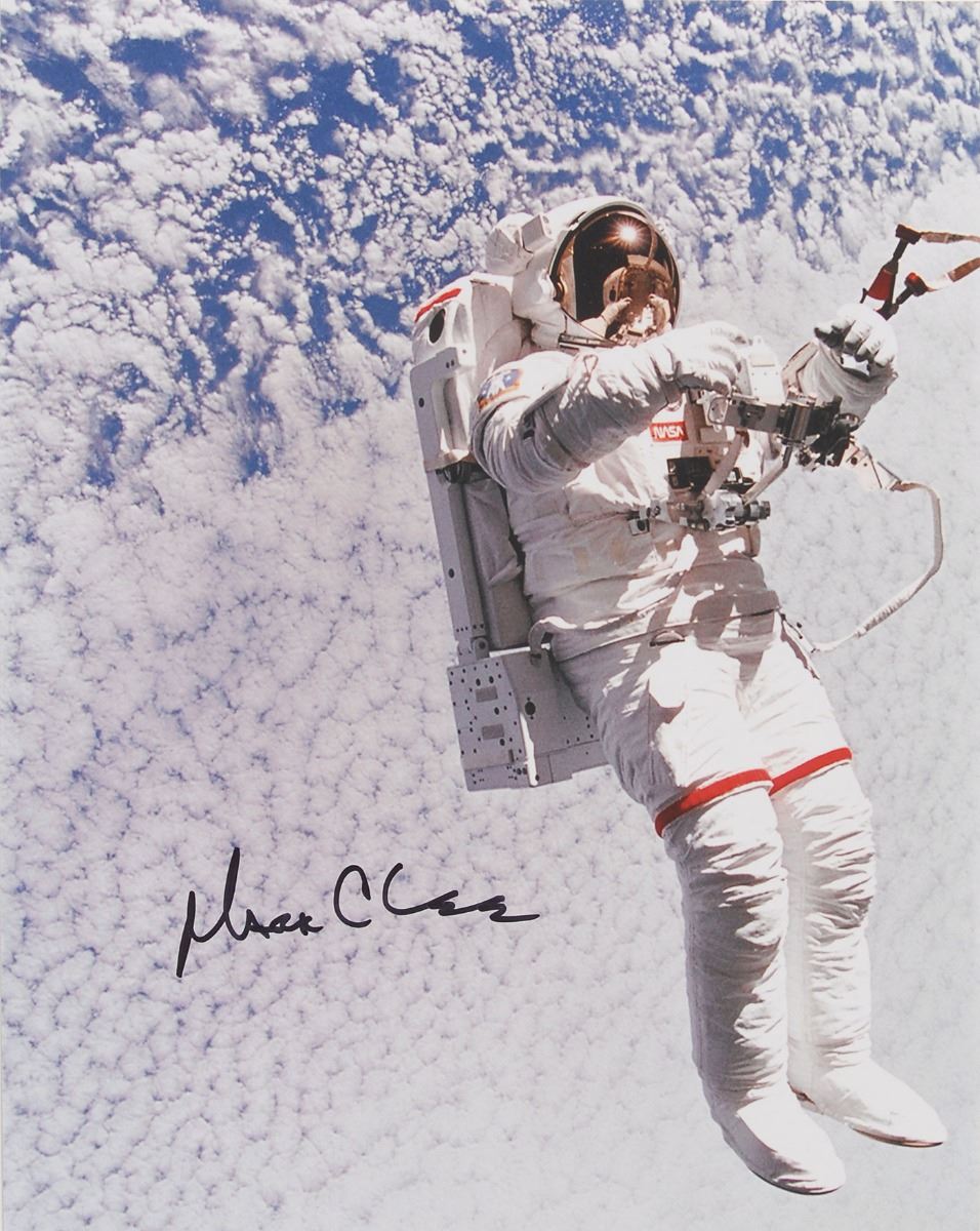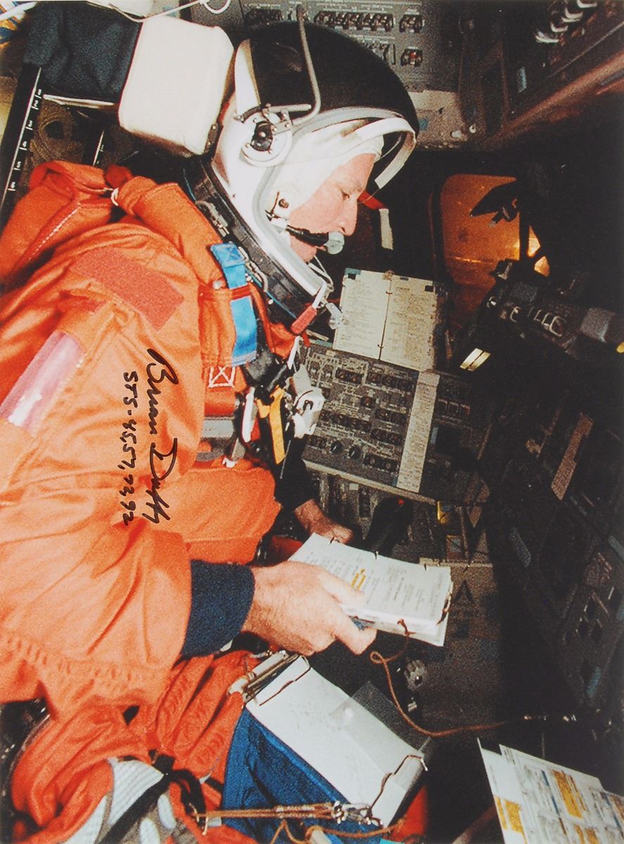 Astronaut Scholarship Foundation collection of twelve color satin-finish photos as part of membership to the 2007 Astronaut Autograph Club, 8 x 10 and 10 x 8, individually signed in felt tip by the astronaut pictured, with some adding their mission designation, including: John Blaha, Tom Jones, Eileen Collins, Rhea Seddon, Bruce Melnick, Jon McBride, Kathy Thornton, John Glenn, Charles 'Sam' Gemar, Don Williams, Brian Duffy, and Mark C. Lee. Includes the original Astronaut Autograph Club box. In overall very fine condition. Each photo is accompanied by an Astronaut Autograph Club letter bearing a preprinted signature. Pre-certified Zarelli Space Authentication.