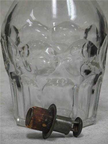 ASHBURTON flint Bar Decanter with bar lip. Multiple manufacturers, primarily New England Glass, Bakewell & Pears, & Boston & Sandwich Company produced the "Ashburton" pattern decanter during the years 1848-1870s. This Ashburton bar decanter includes the original period pewter pouring stopper. Polished pontil. The decanter is in Excellent condition and measures 10.5"H, (11.5" with stopper) x 5"D. The stopper has some cork missing (see photo) and measures 2"L x 1.5"D.