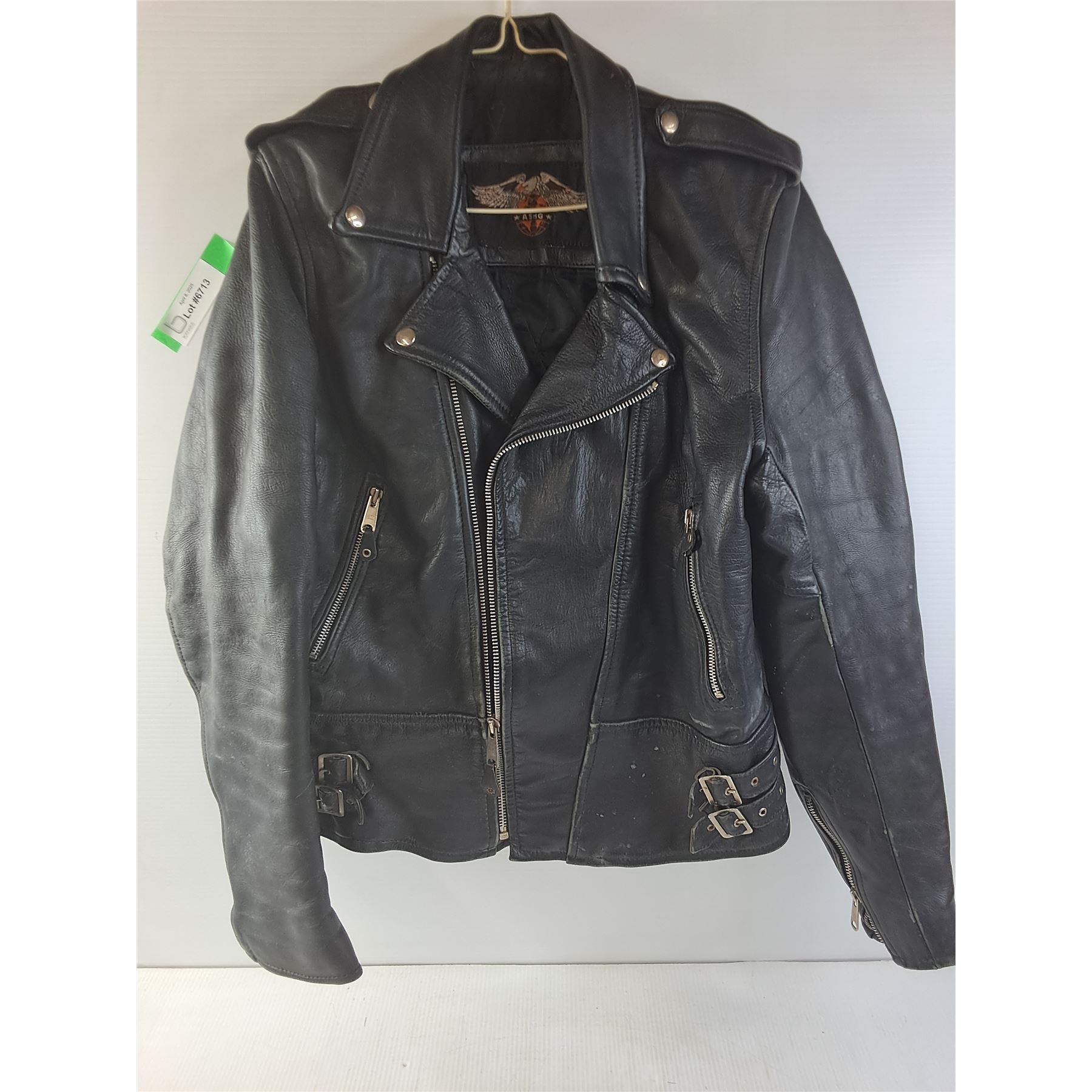 Cowhide leather with Polyester Lining. Size unknown, appears to be L