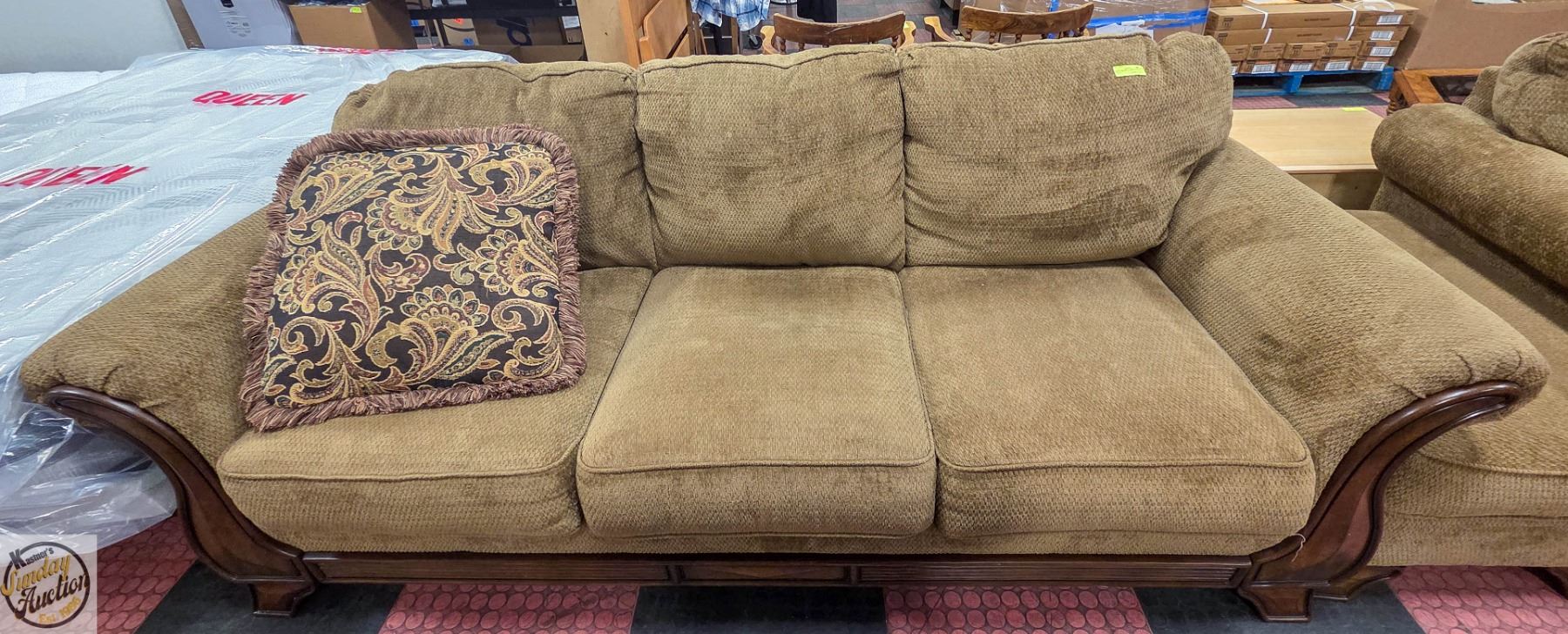 ASHLEY BROWN FABRIC 3 CUSHION COUCH