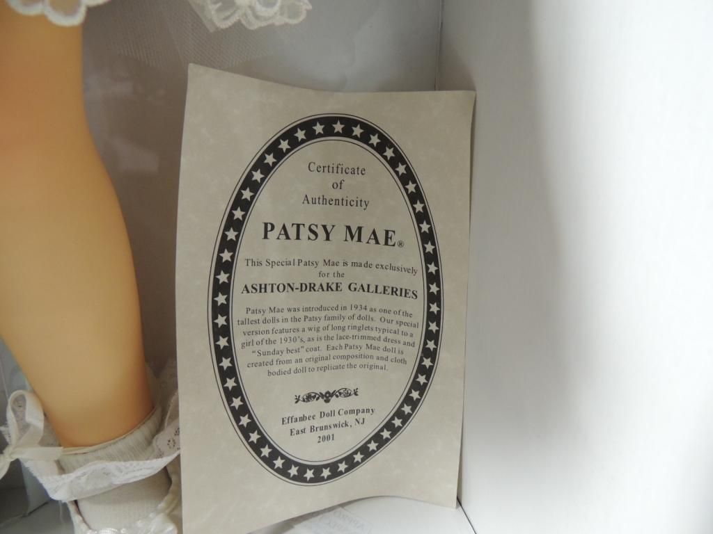 ASHTON DRAKE GALLERIES EFFAMBEE DOLL COMPANY. PATSY MAE DOLL INTROUDUCED IN 1943. CREATED FROM ORGINAL COMPOSITION. AS SHOWN. SEE PHOTO FOR MORE DETAILS.