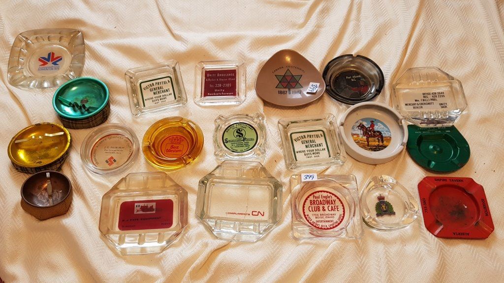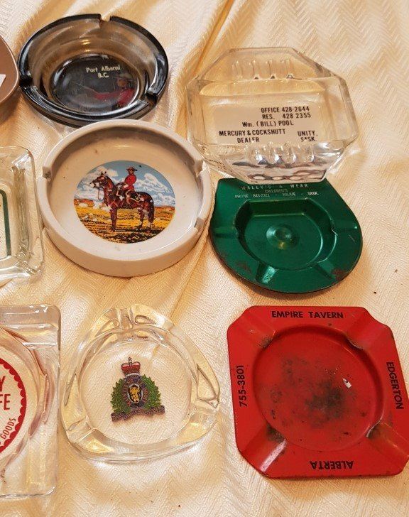 ASHTRAY LOT, 3 BEAN BAGS, 14 ADVERTISING, 3 RCMP
