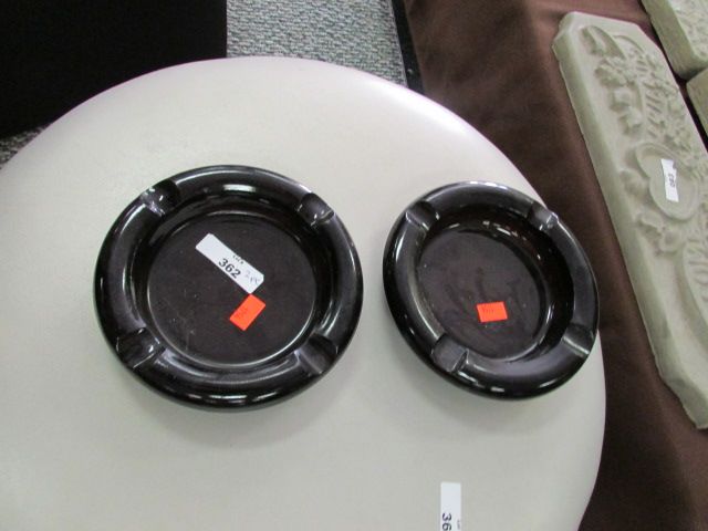ASHTRAYS - 2 - BLACK - GLASS FOR VINTAGE SELF STANDING METAL STAND