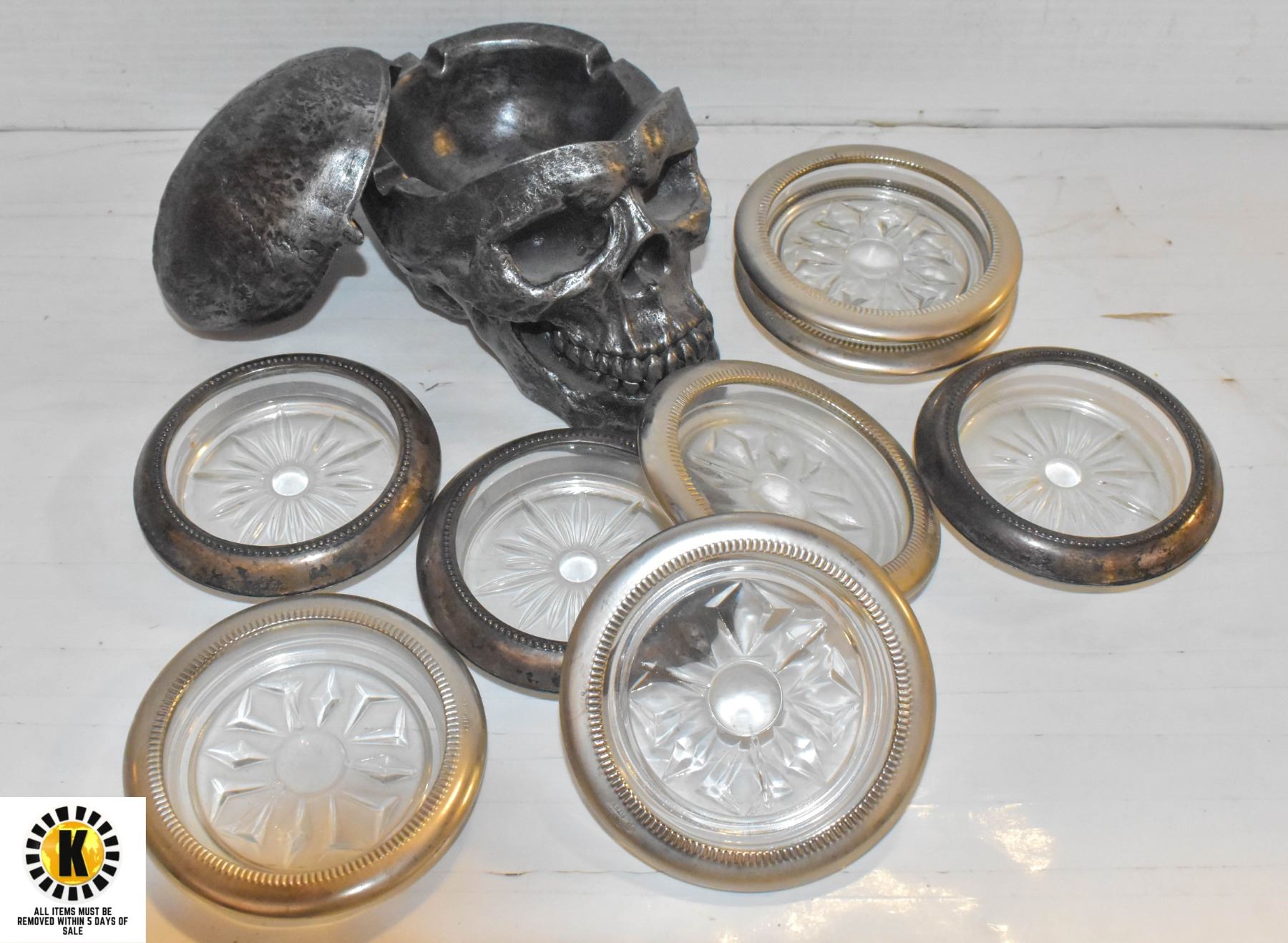 ASHTRAYS - 8 GLASS & 1 SKULL ASHTRAY