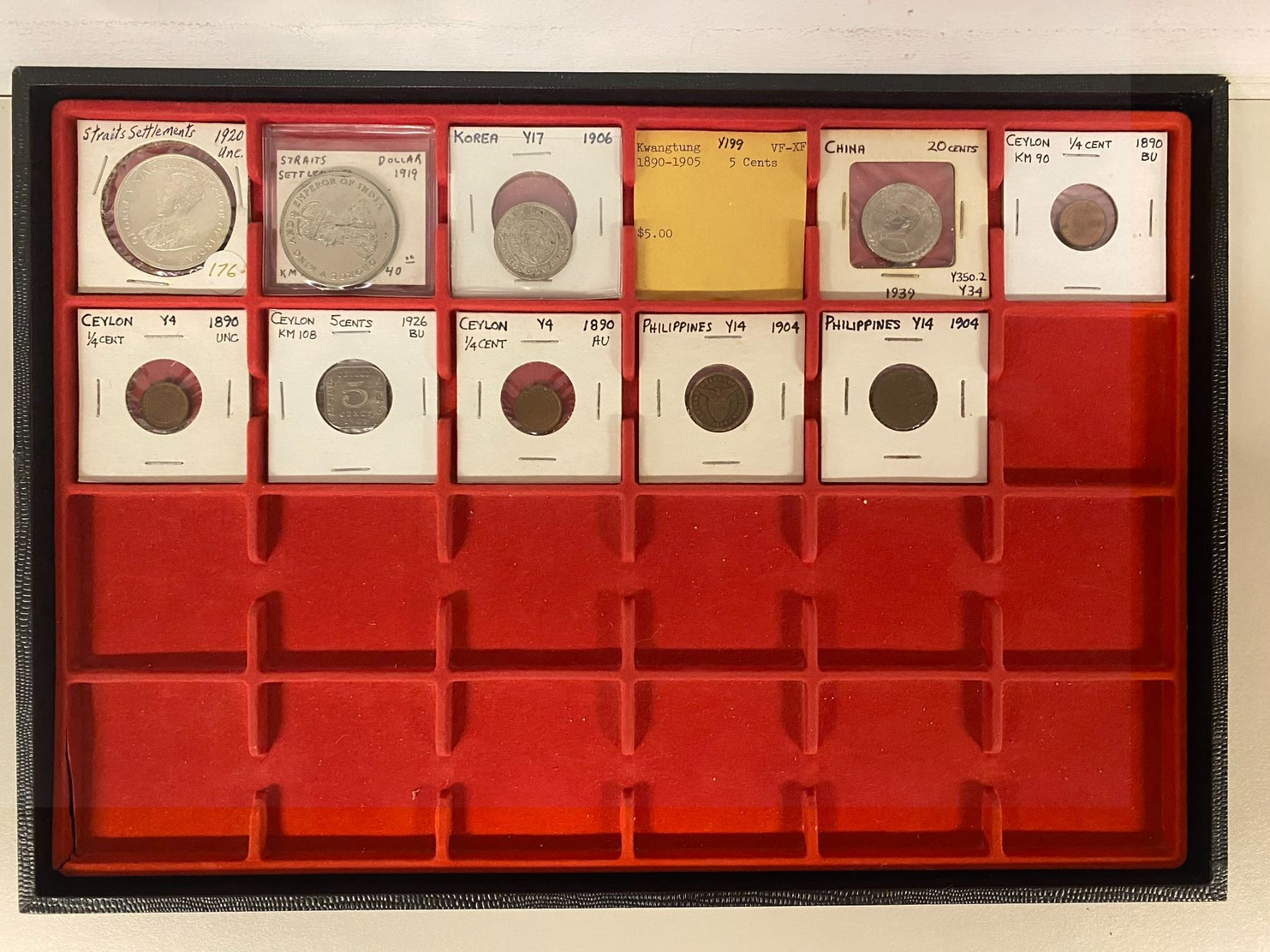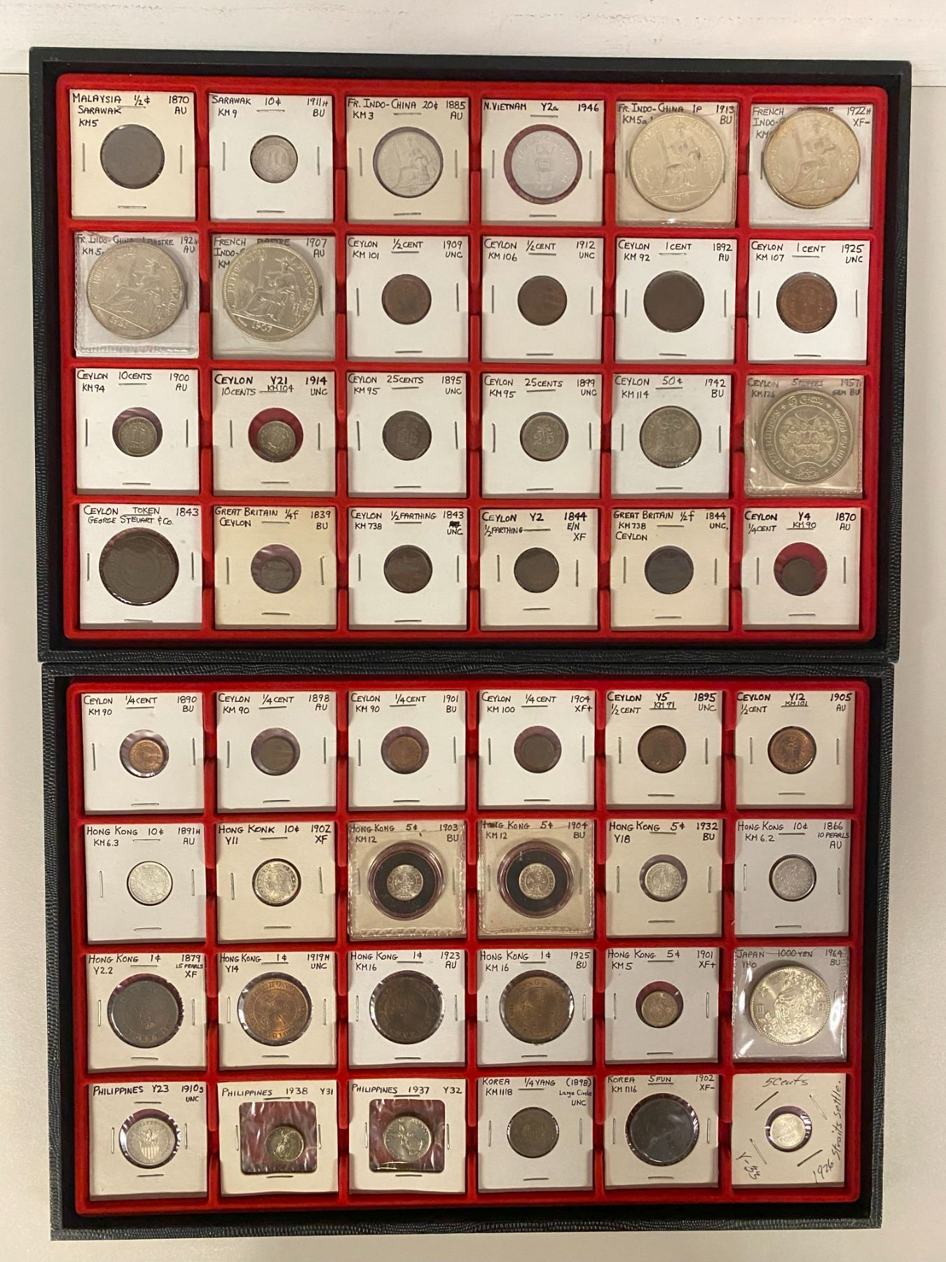 ASIA: LOT of 71 coins, diverse group of coins from Sarawak, French Indo-China, North Vietnam, British Ceylon, British Hong Kong, Japan, U.S. Philippines, Korea, Straits Settlements, and the Republic of China, an attractive group, retail value $1000, lot of 58 coins.