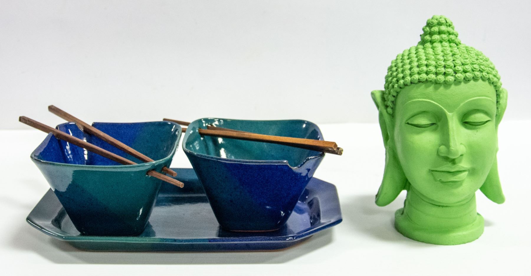 ASIAN BOWLS, CHOPSTICKS TRAY SET, LARGE BUDDHA