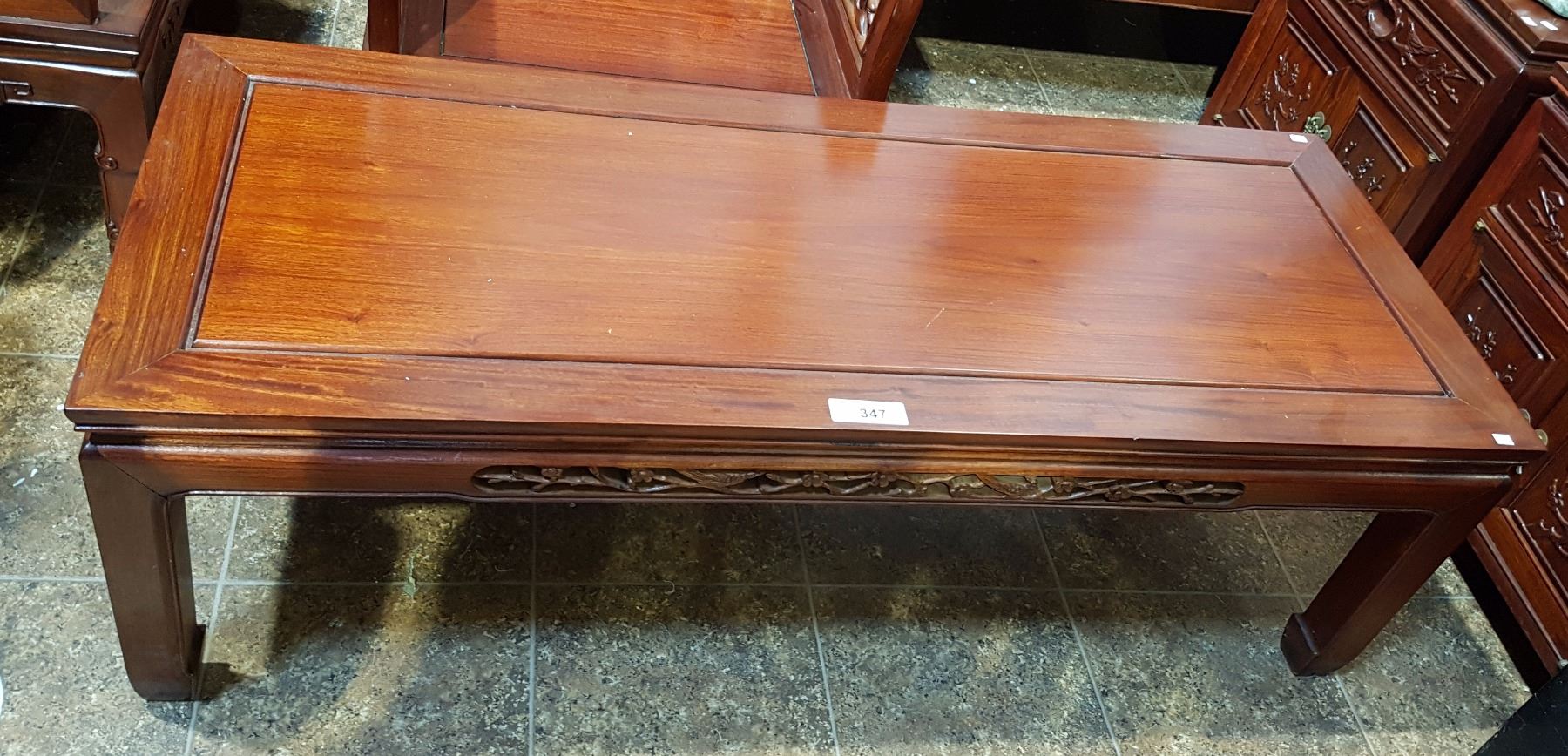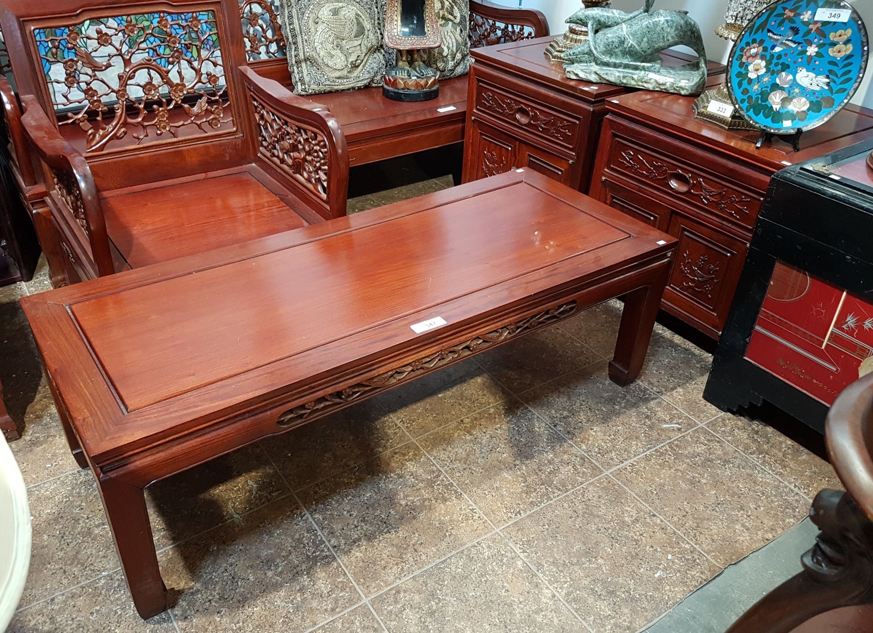 ASIAN CARVED ROSEWOOD THREE PIECE COFFEE AND END TABLE SET