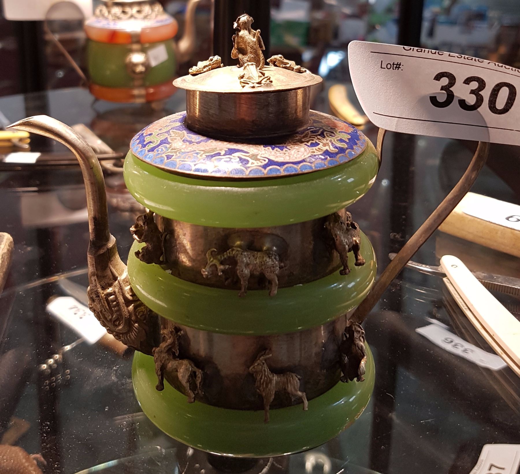 ASIAN CLOISONNE & STONE FIGURAL TEAPOT