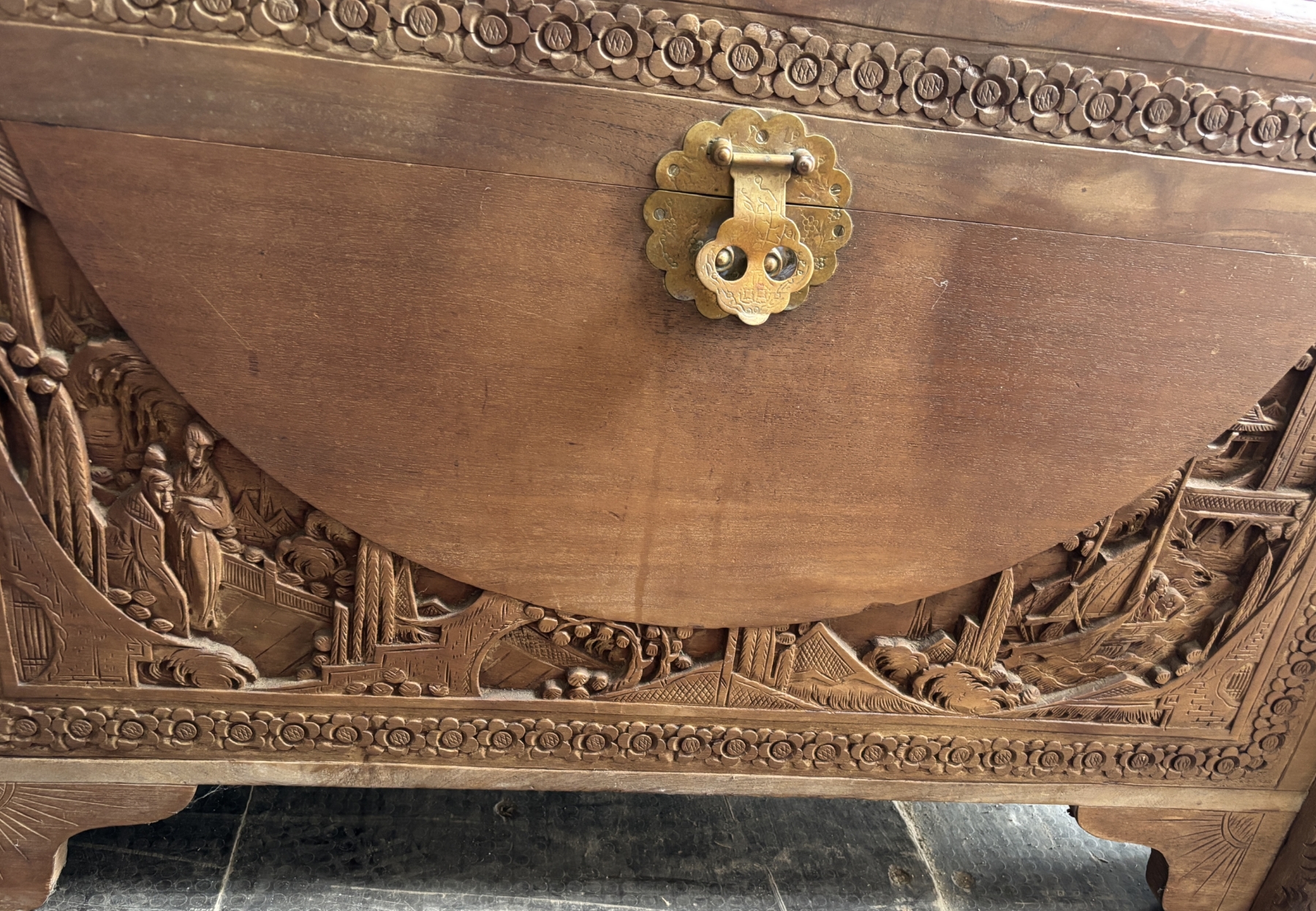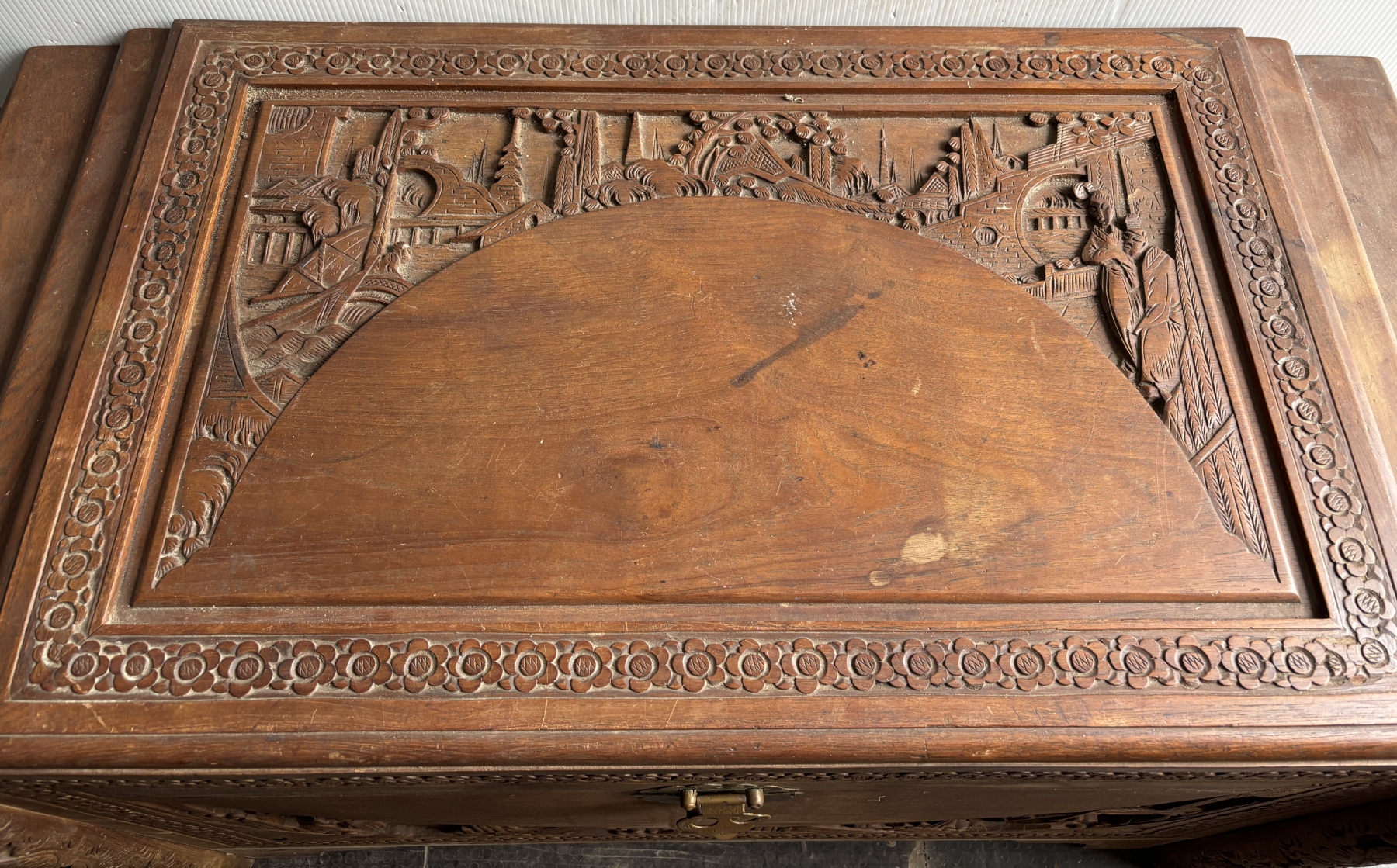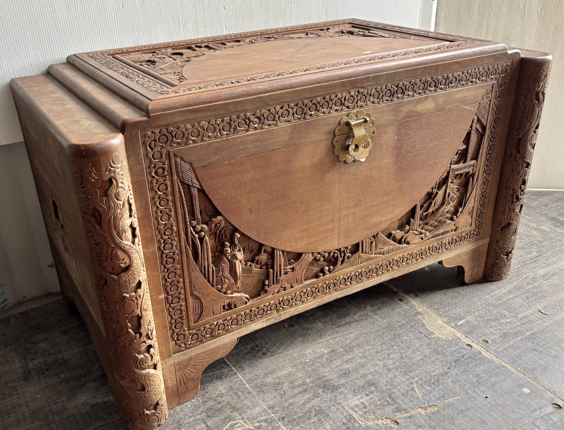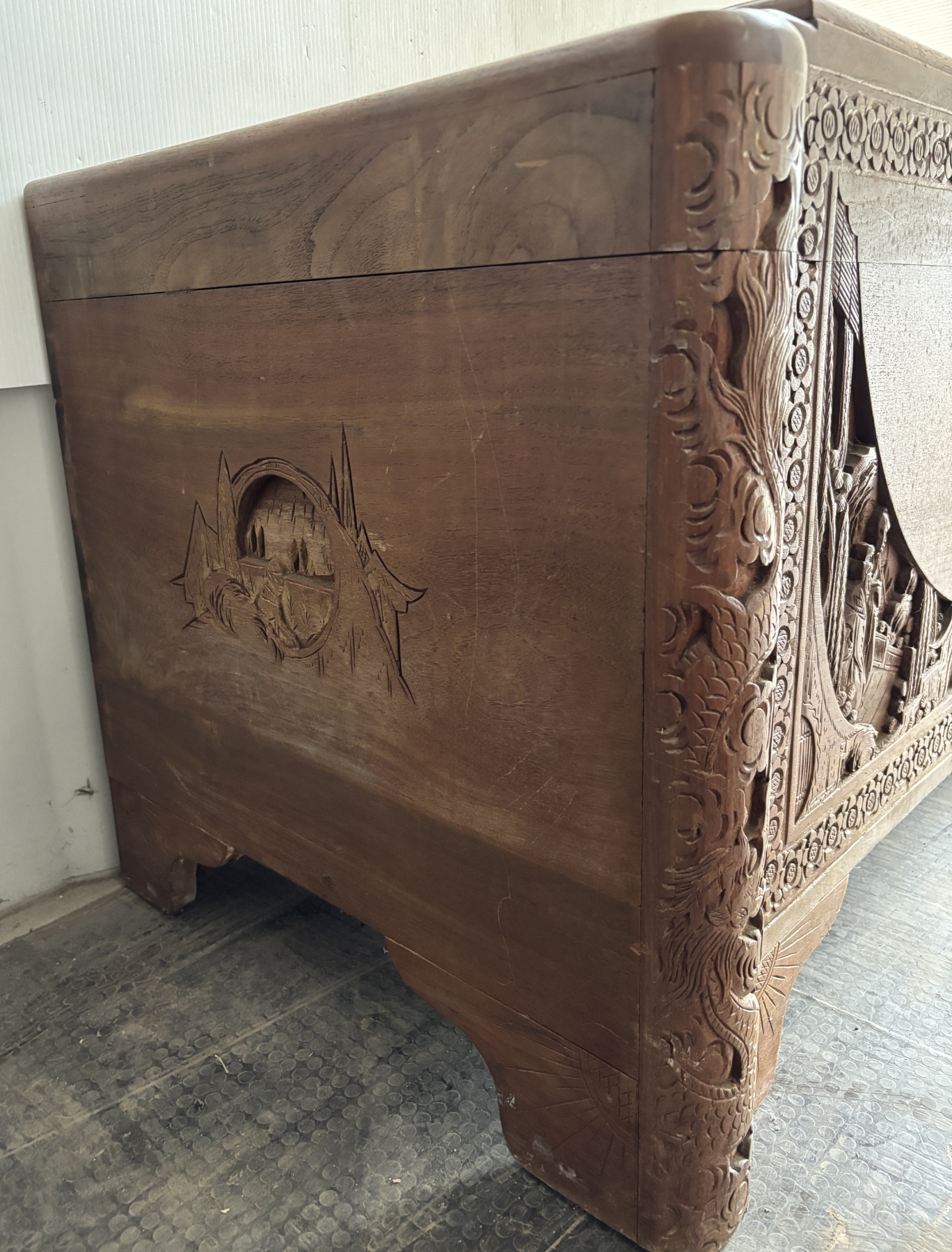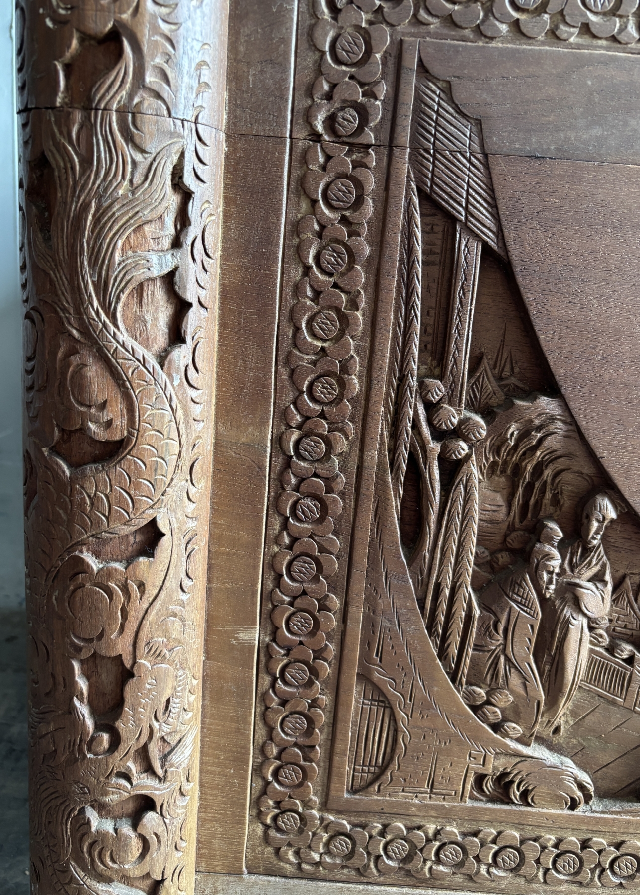 NOTE: CARVED CHERRY WOOD. 21.5 X 23 X 41 INCH. BIDDER TO ARRANGE SHIPPING.