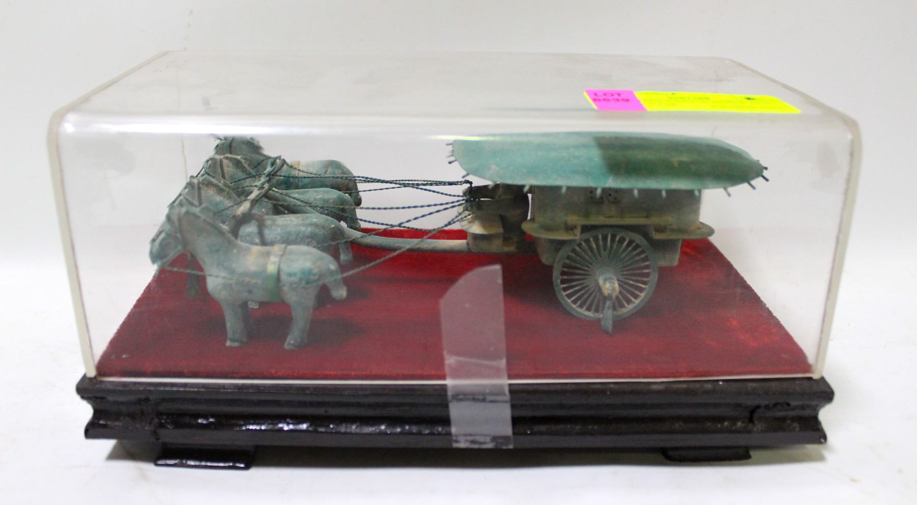 ASIAN JADE CARVED HORSE AND CART W CASE
