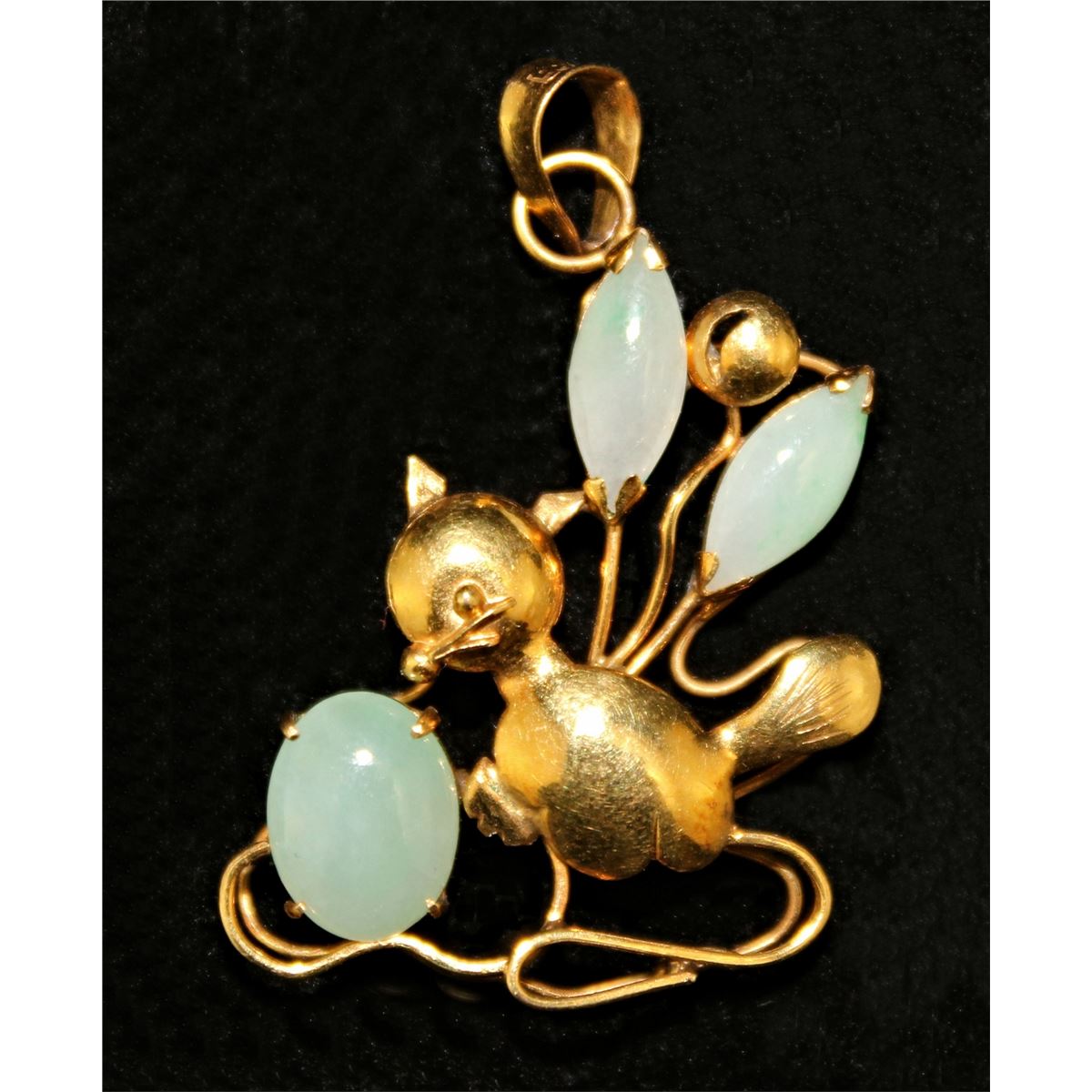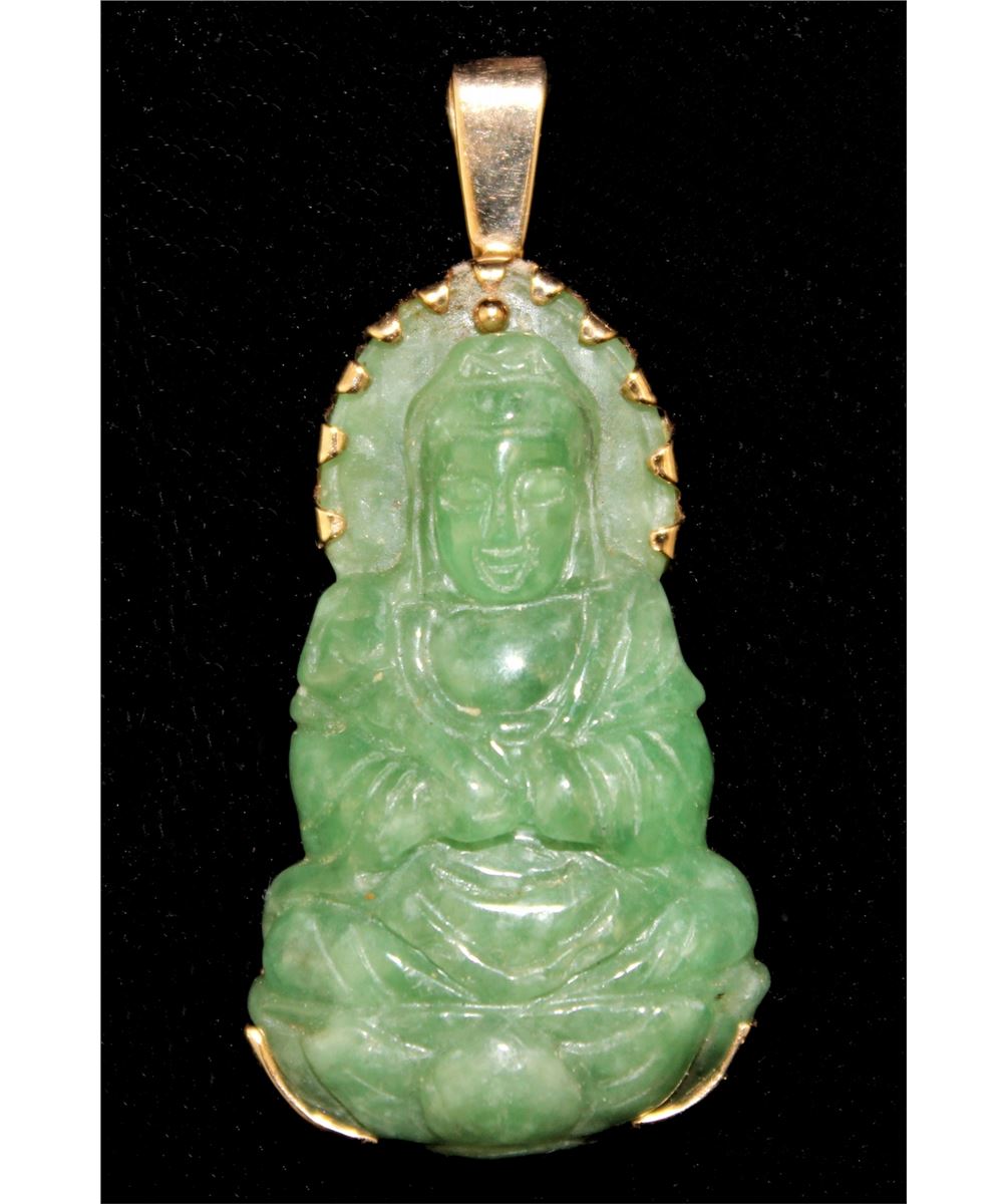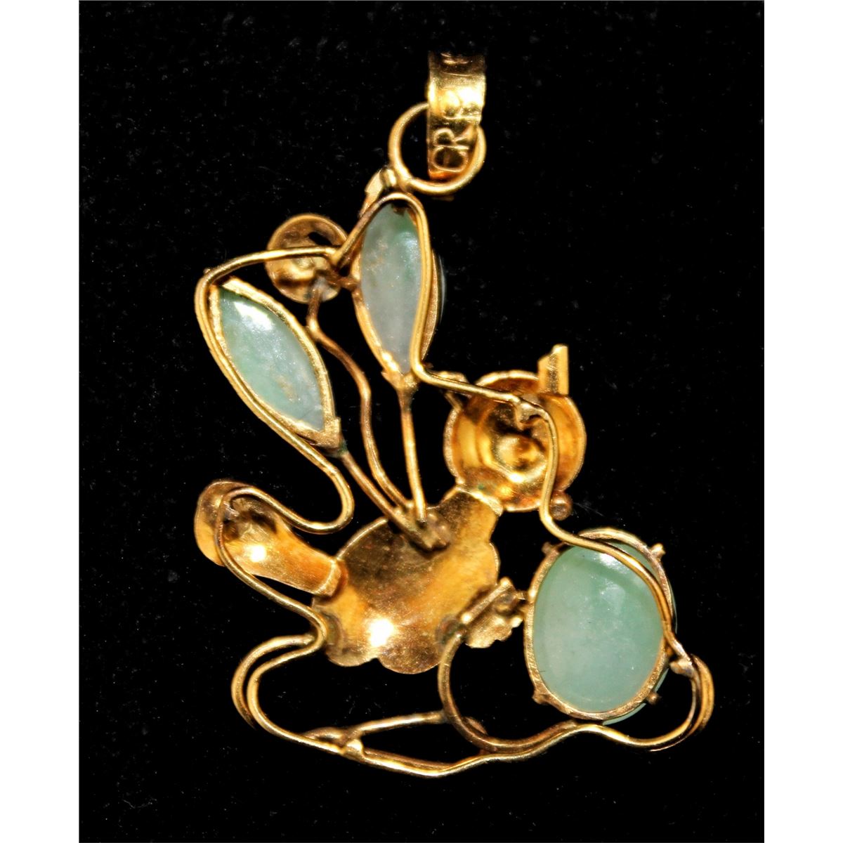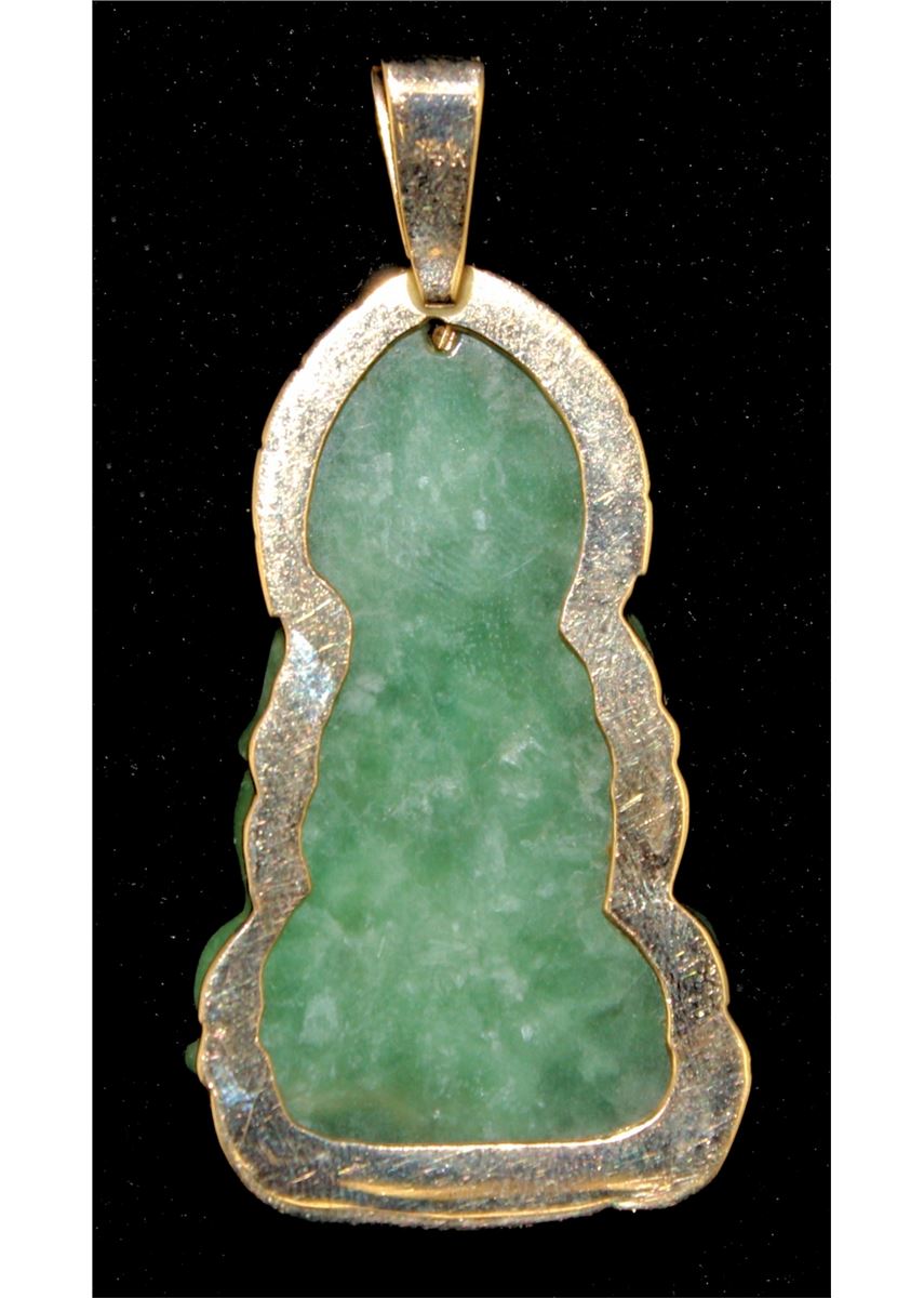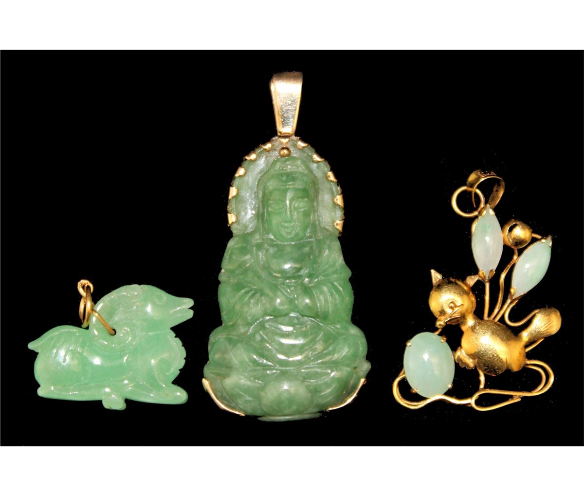 Second half 20th century. Comprised of three pendants, each mounted with 14K yellow gold. Largest height, 2 inches
