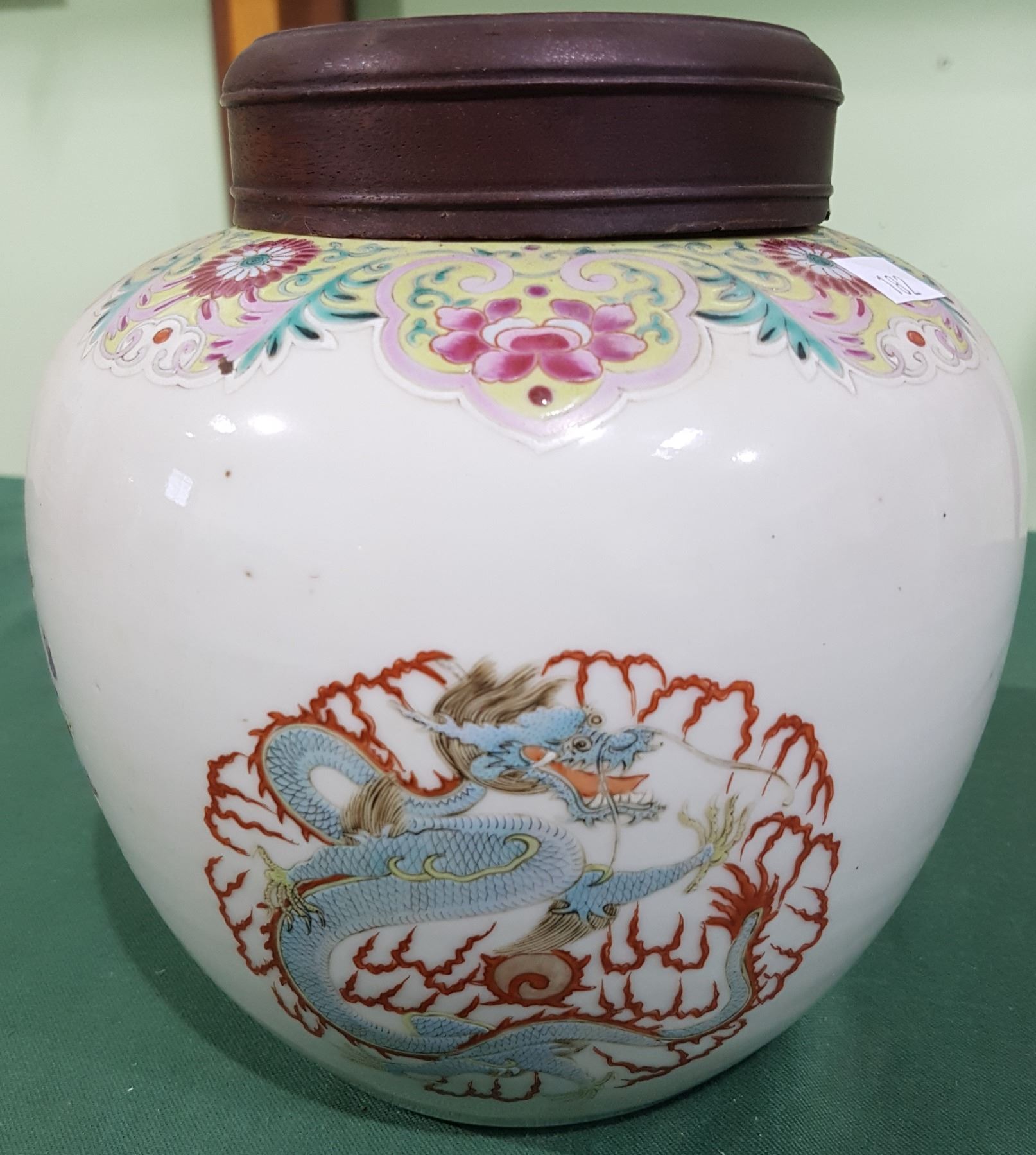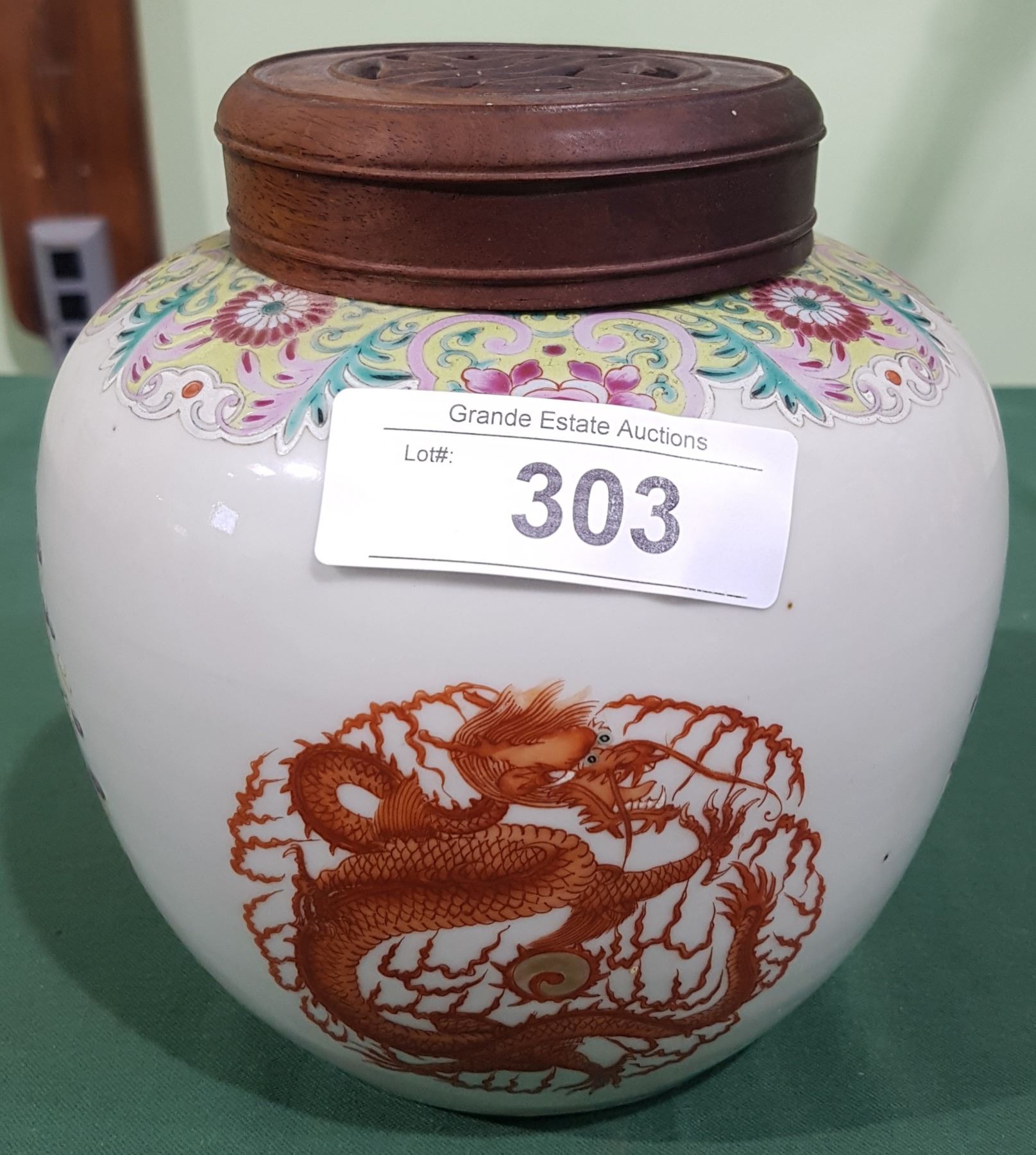 ASIAN PORCLEAIN JARDINIERE W/DRAGON MOTIF