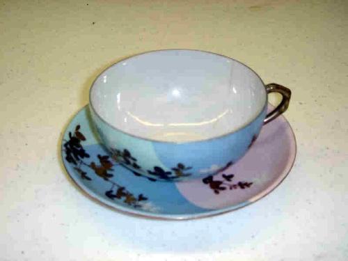 ASIAN PRINT PINK, TEAL & BLUE W/GOLD FLORAL SET