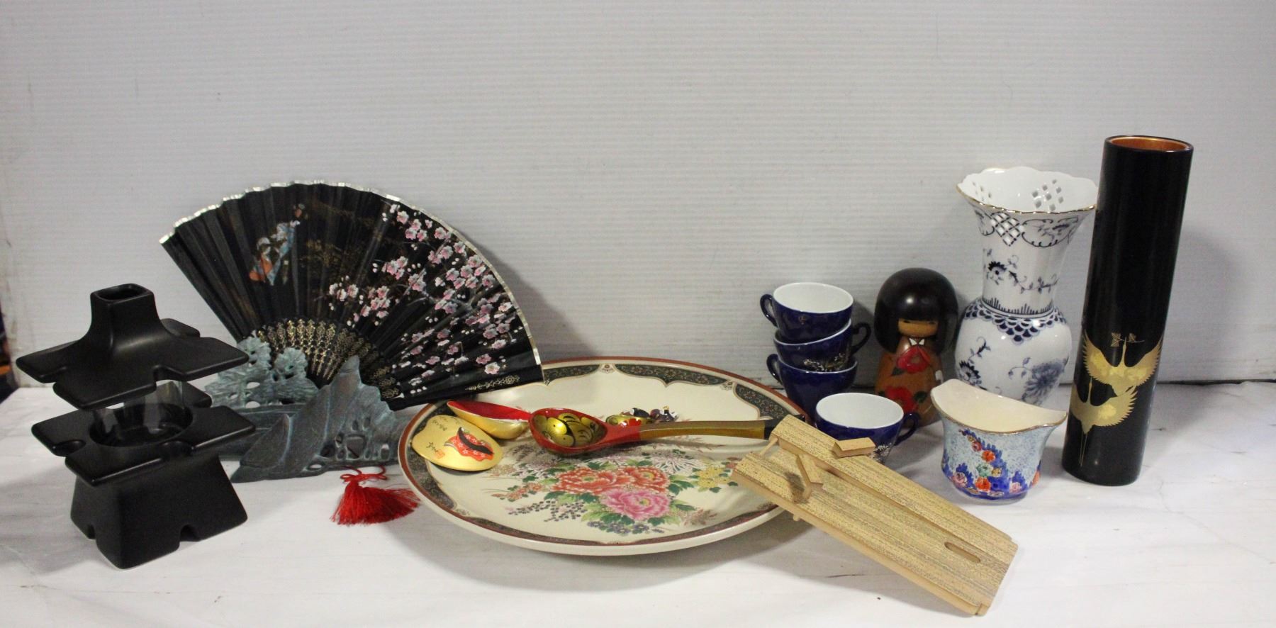 ASIAN THEMED DECORATIVE ITEMS- BOX LOT ASST.