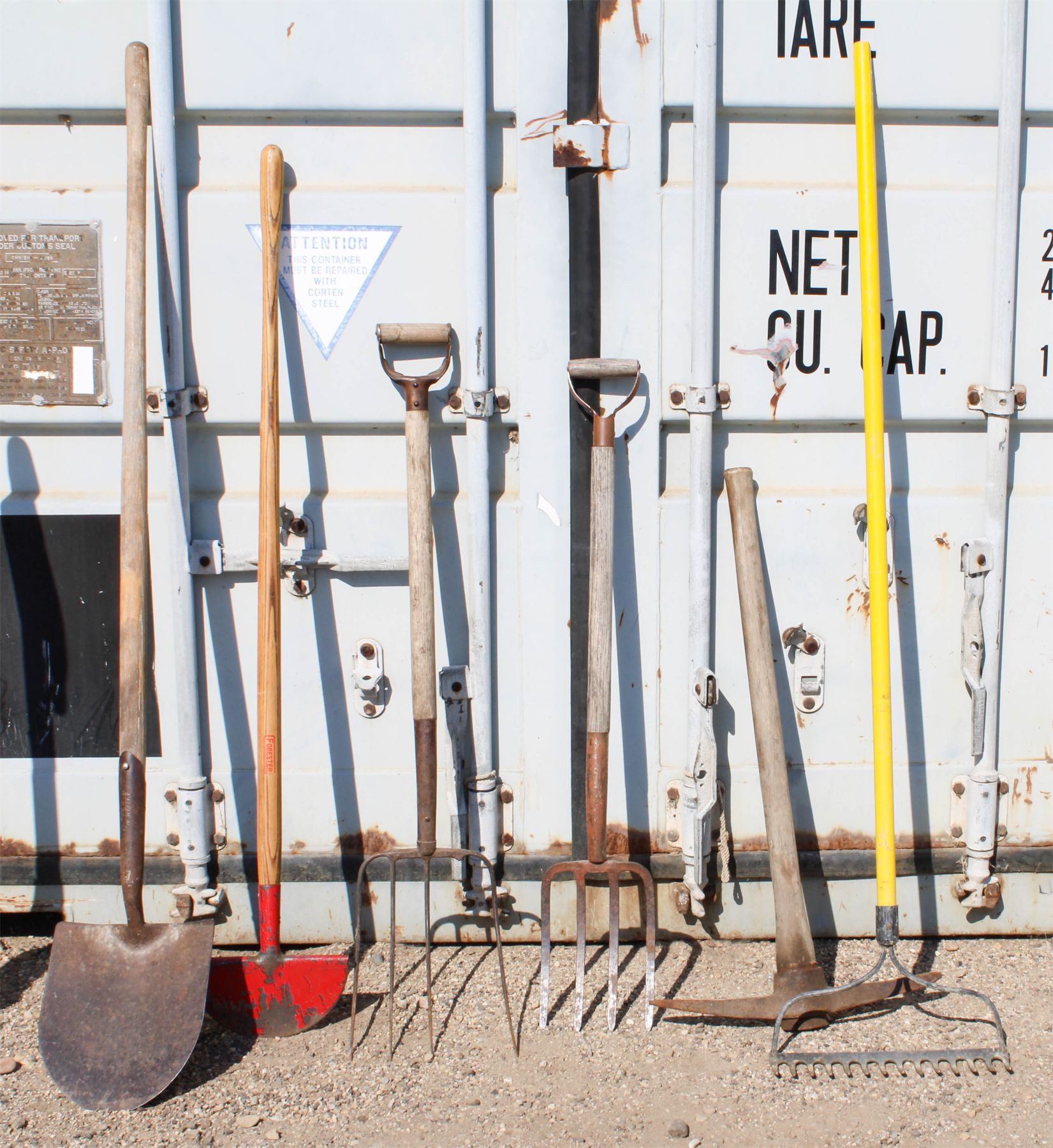ASSORT. FORKS, RAKE, SHOVEL, ICE PICK, ETC.