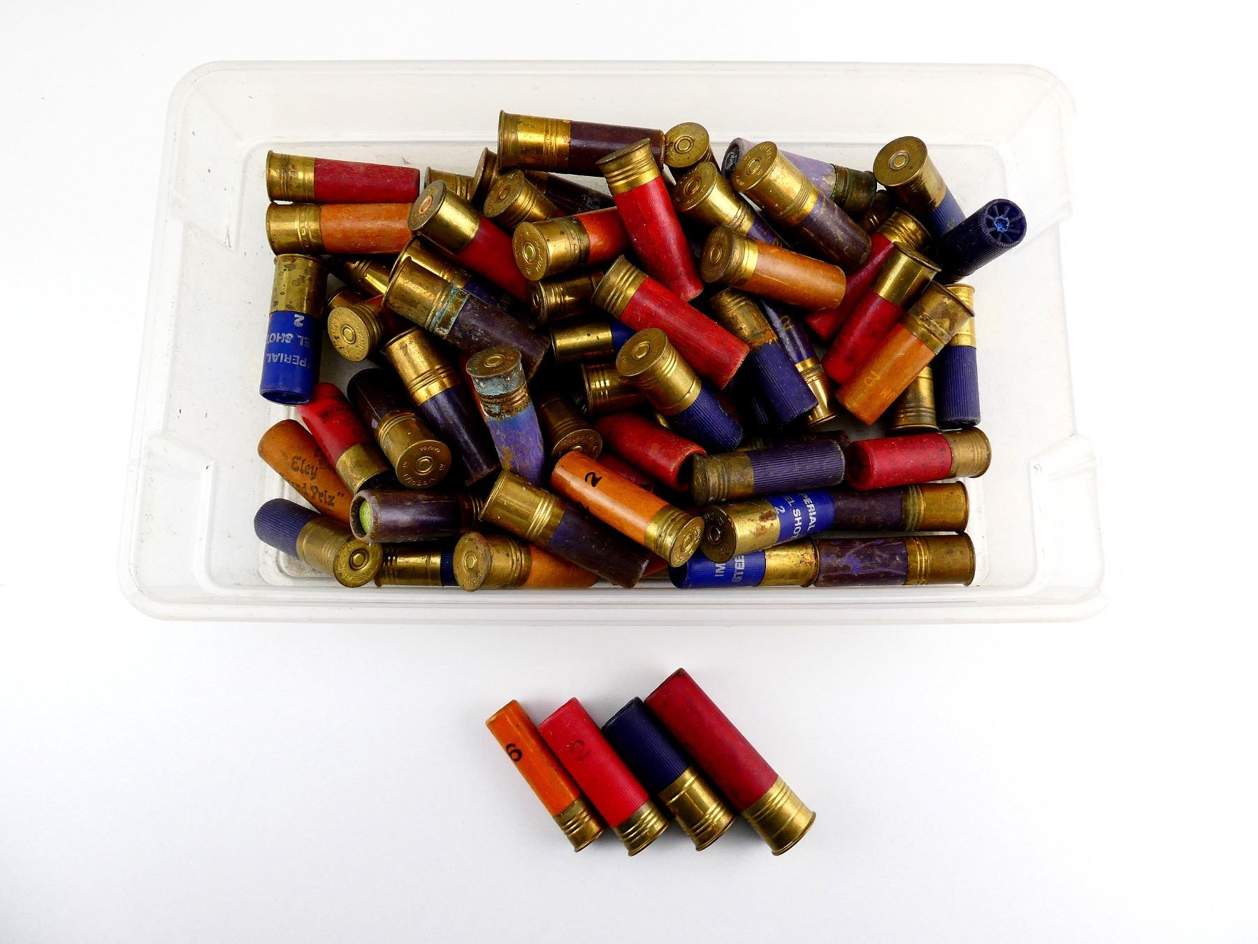 LOT INCLUDES; APPROX. (70) RNDS, VARIOUS MANUFACTURERS INCLUDING; DOMINION, WINCHESTER, IMPERIAL, ETC., ASSORTED SHOT SIZES; #2, #6, #7 1/2, ETC.