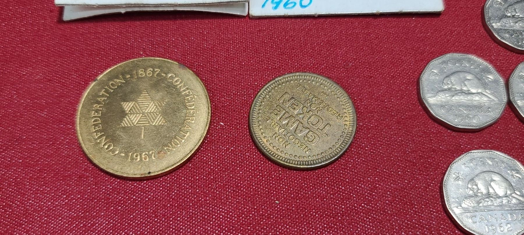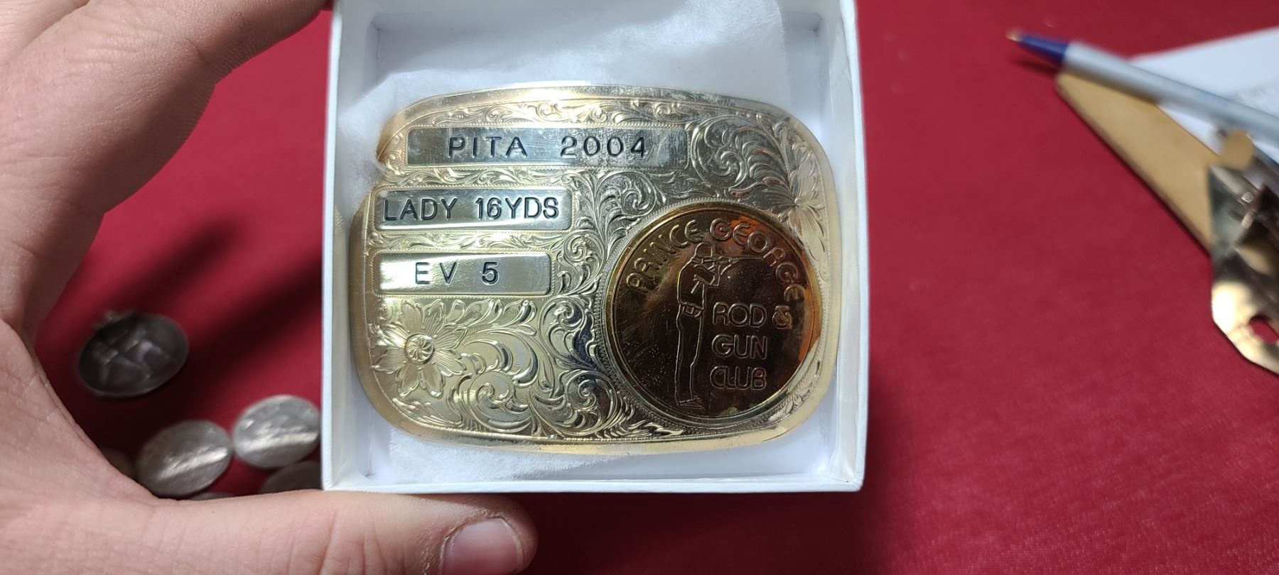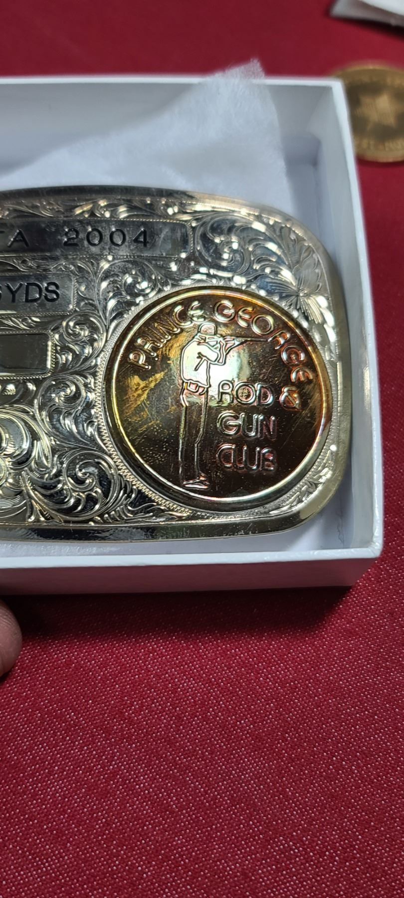 ASSORTED: 11 N962 NICKELS, BOXING MEDAL, TOKENS AND PRINCE GEORGE GUN CLUB PITA 2004 BELT BUCKLE
