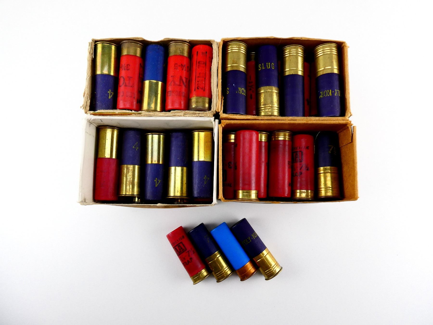 LOT INCLUDES; APPROX. (89) RNDS, VARIOUS MANUFACTURERS, ASSORTED SHOT SIZES INCLUDING; , #4, #7 1/2, #BB, #SLUG, ETC.