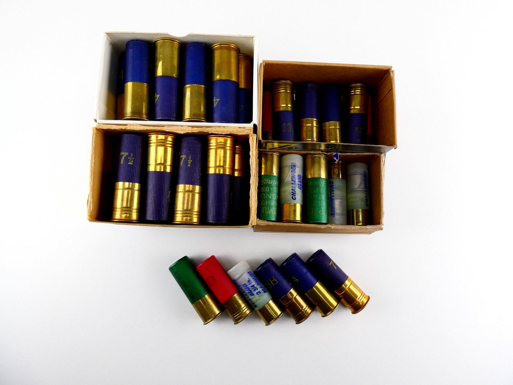 LOT INCLUDES; APPROX. (100) VARIOUS MANUFACTURERS INCLUDING; IMPERIAL, CHALLENGER, ETC., ASSORTED SHOT SIZE; #4, #7 1/2, #BB, #SLUG, ETC.
