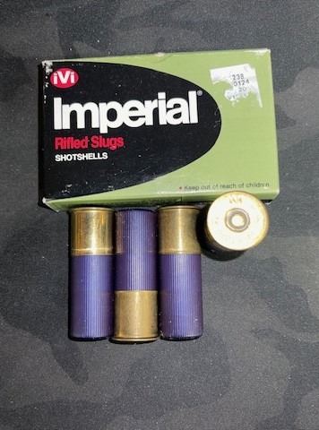 1 box – Imperial 12ga 2 ¾ in 1oz Hollow Point Rifled Slugs 4 pcs