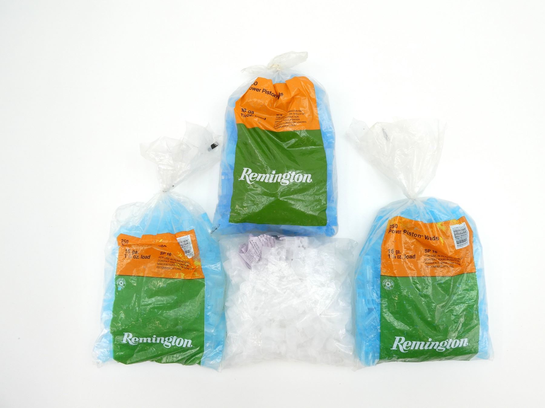 LOT INCLUDES; APPROX. (525) REMINGTON 16 GA. POWER PISTON WADS, MARKED: "POWER PISTON WADS, SP 16" ETC. & APPROX. (100) BALLISTIC PRODUCTS 16 GA. LIGHT LOAD SPECIALIST WADS, MARKED: "G/BP, SG16 LIGHT, 16GA LIGHT LOAD SPECIALIST" ETC. SEE PHOTOS.