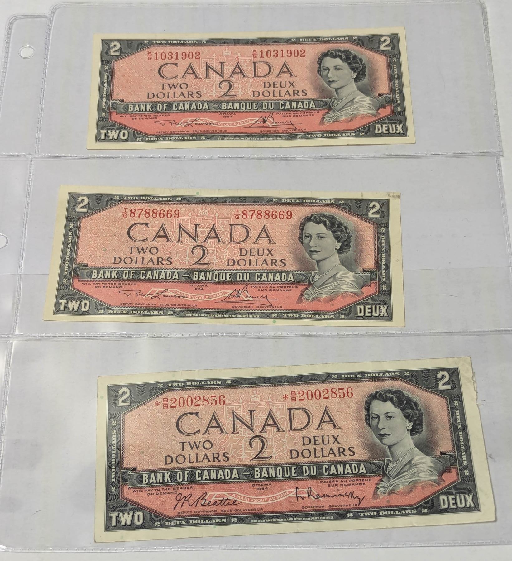 ASSORTED 1954 CANADIAN $2 BANK NOTES