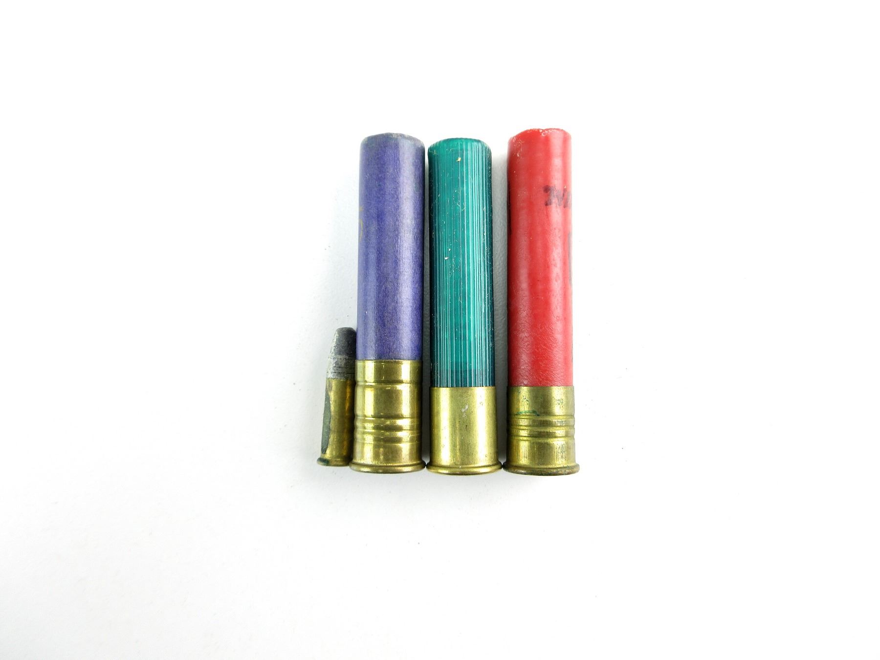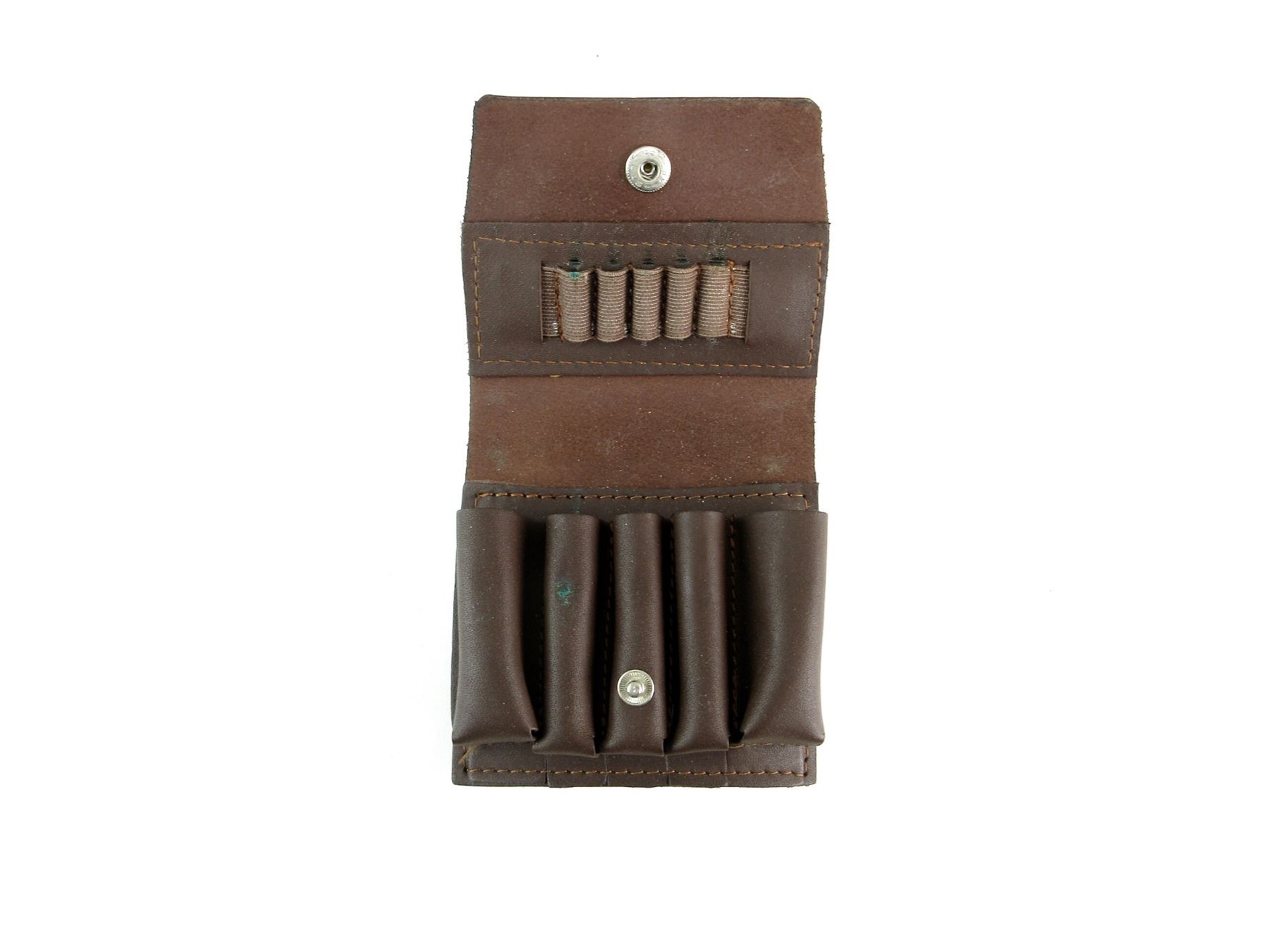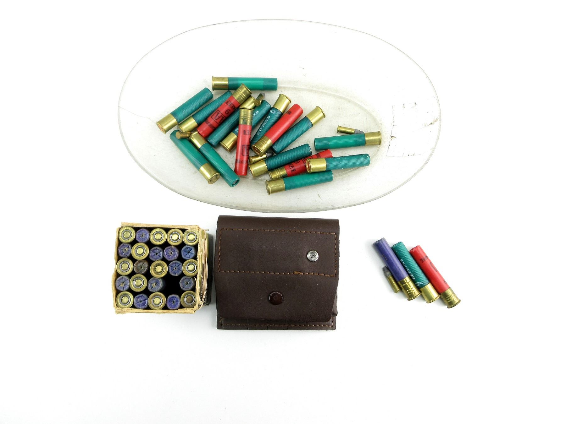 LOT INCLUDES; APPROX. (49) RNDS, VARIOUS MANUFACTURERS INCLUDING; REMINGTON, IMPERIAL, ETC., ASSORTED SHOT; SIZES # 5, #6, #RIFLED SLUGS, ETC., (1) LEATHER AMMO POUCH.