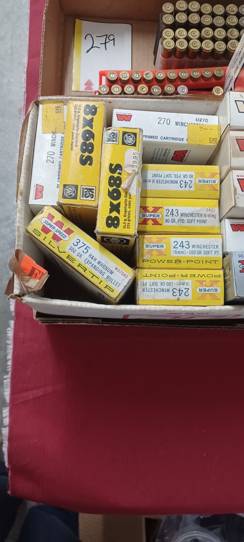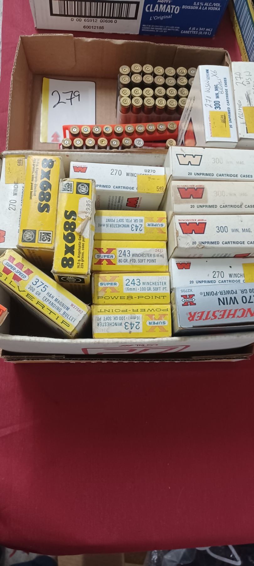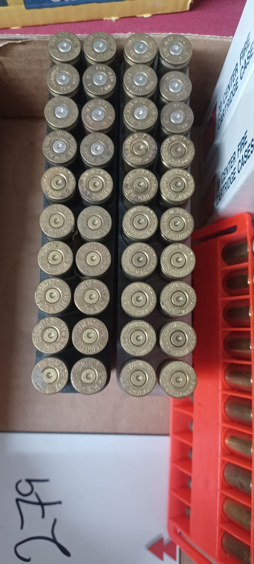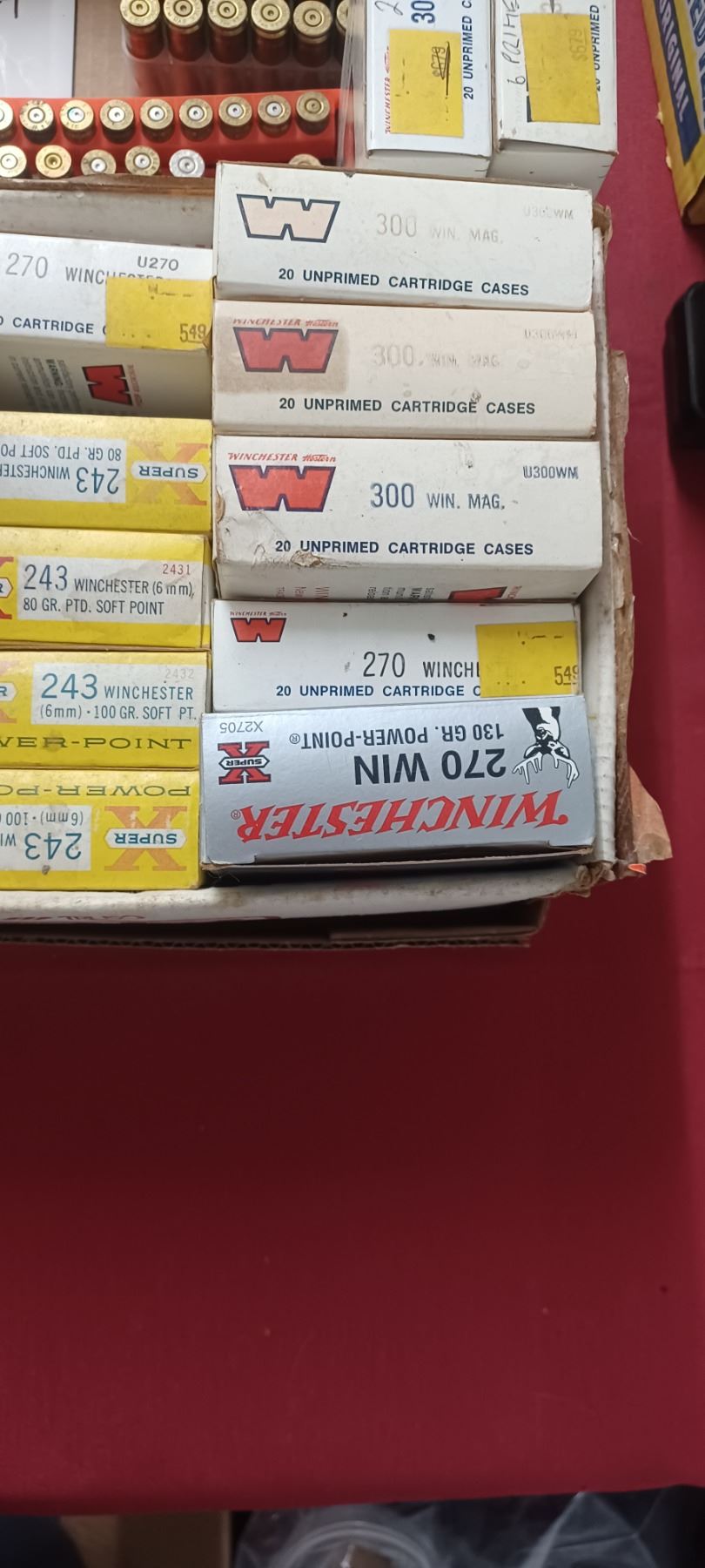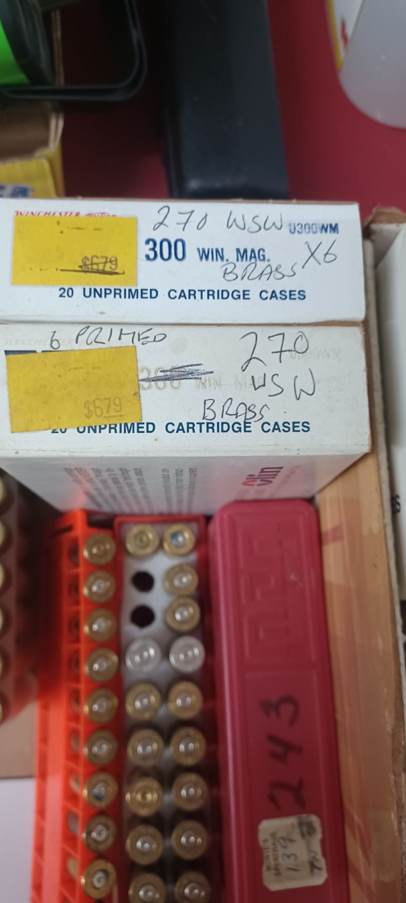 ASSORTED 243, 7MM MAG AND 270 WSW BRASS AND EMPTY AMMO BOXES
