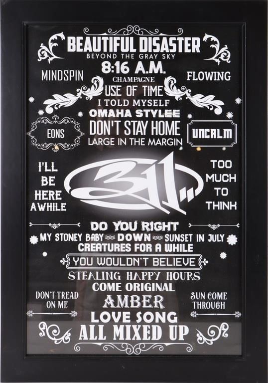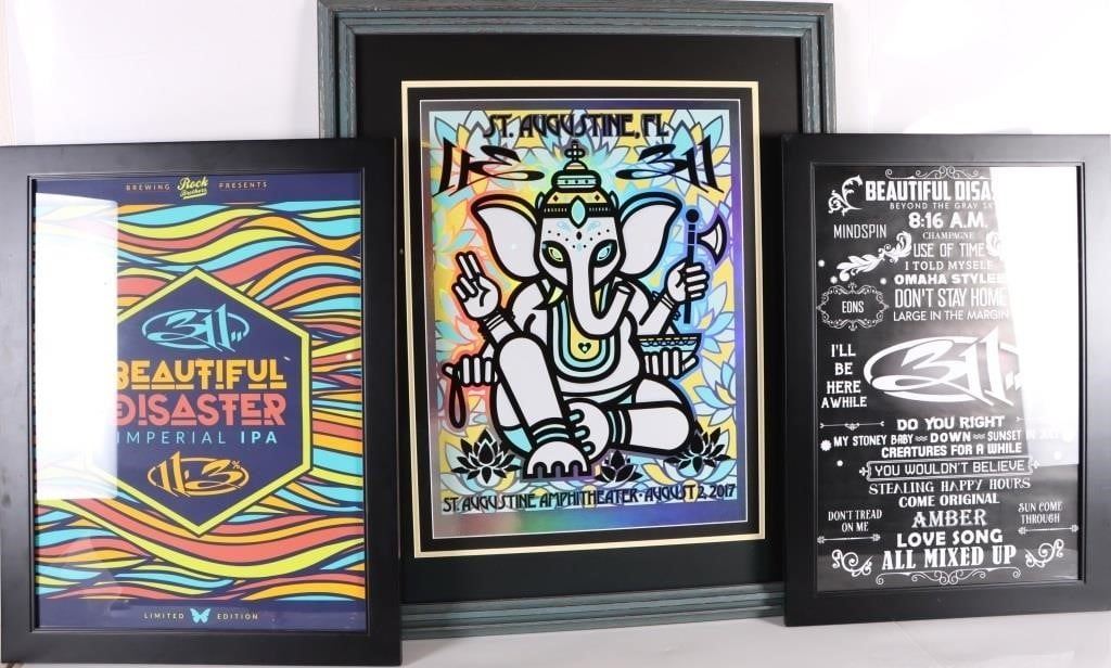 Assorted 311 framed posters to include one Saint Augustine August 2, 2017 poster, one Beautiful Disaster IPA poster limited edition, and one Beautiful Disaster Beyond The Gray Sky poster.