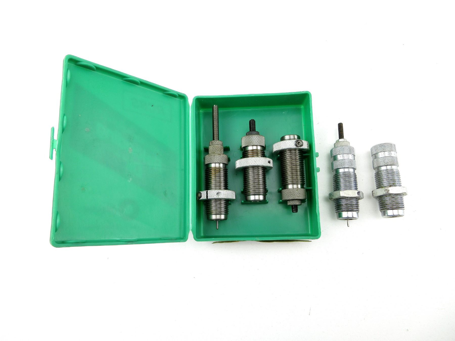 LOT INCLUDES; (1) RCBS 3-PIECE RELOADING DIES & (1) LYMAN 2-PIECE RELOADING DIES. SEE PHOTOS.