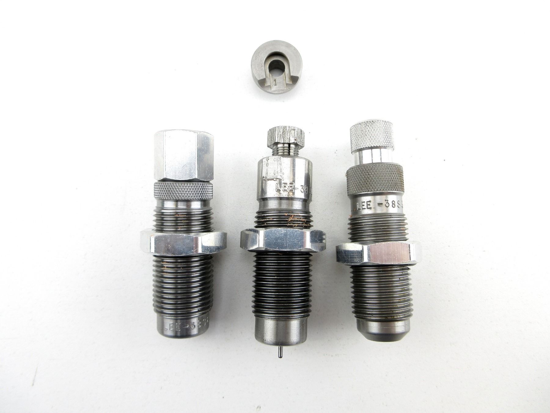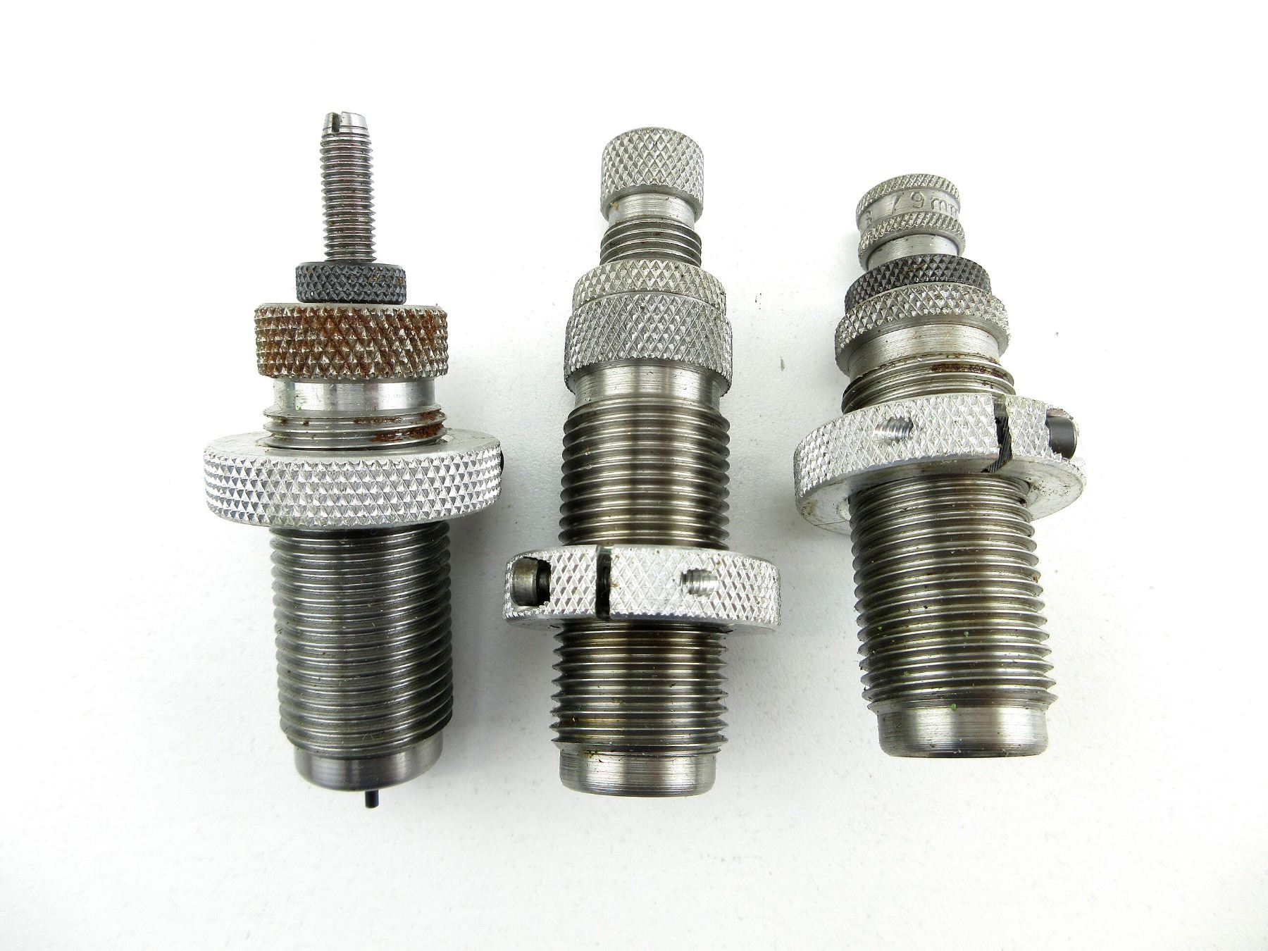 LOT INCLUDES; (1) RCBS 3-PIECE CARBIDE RELOADING DIES & (1) LEE 3-PIECE RELOADING DIES WITH #1 SHELL HOLDER. SEE PHOTOS.
