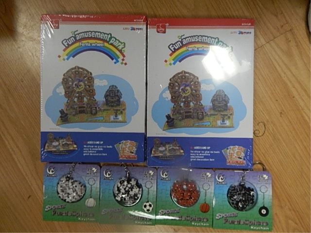 ASSORTED 3D PUZZLES - FERRIS WHEEL, RED MOBILE FIGHTER & 4 ASSORTED PUZZLE SPHERE KEY CHAINS