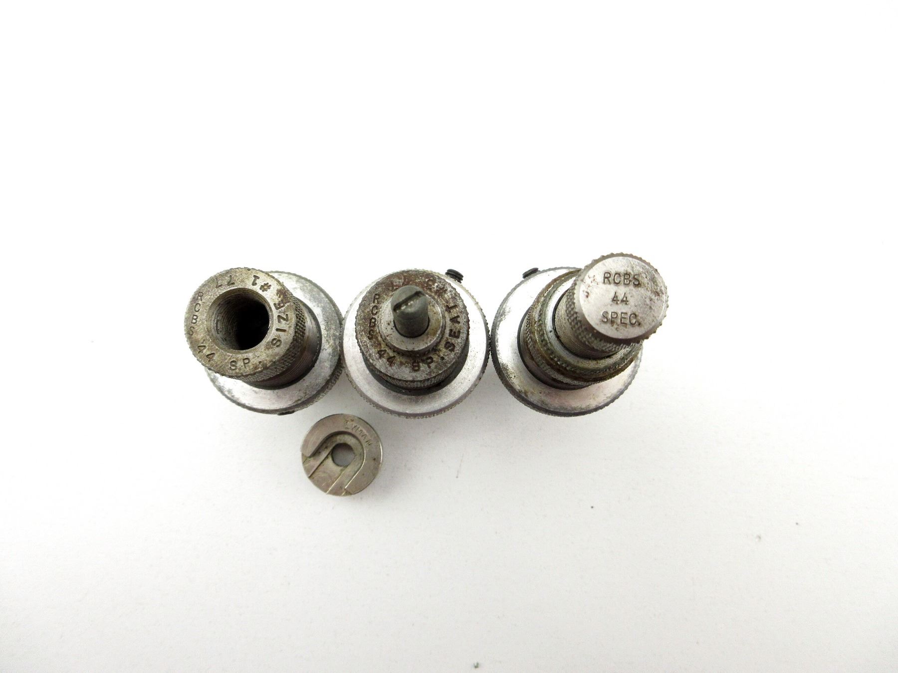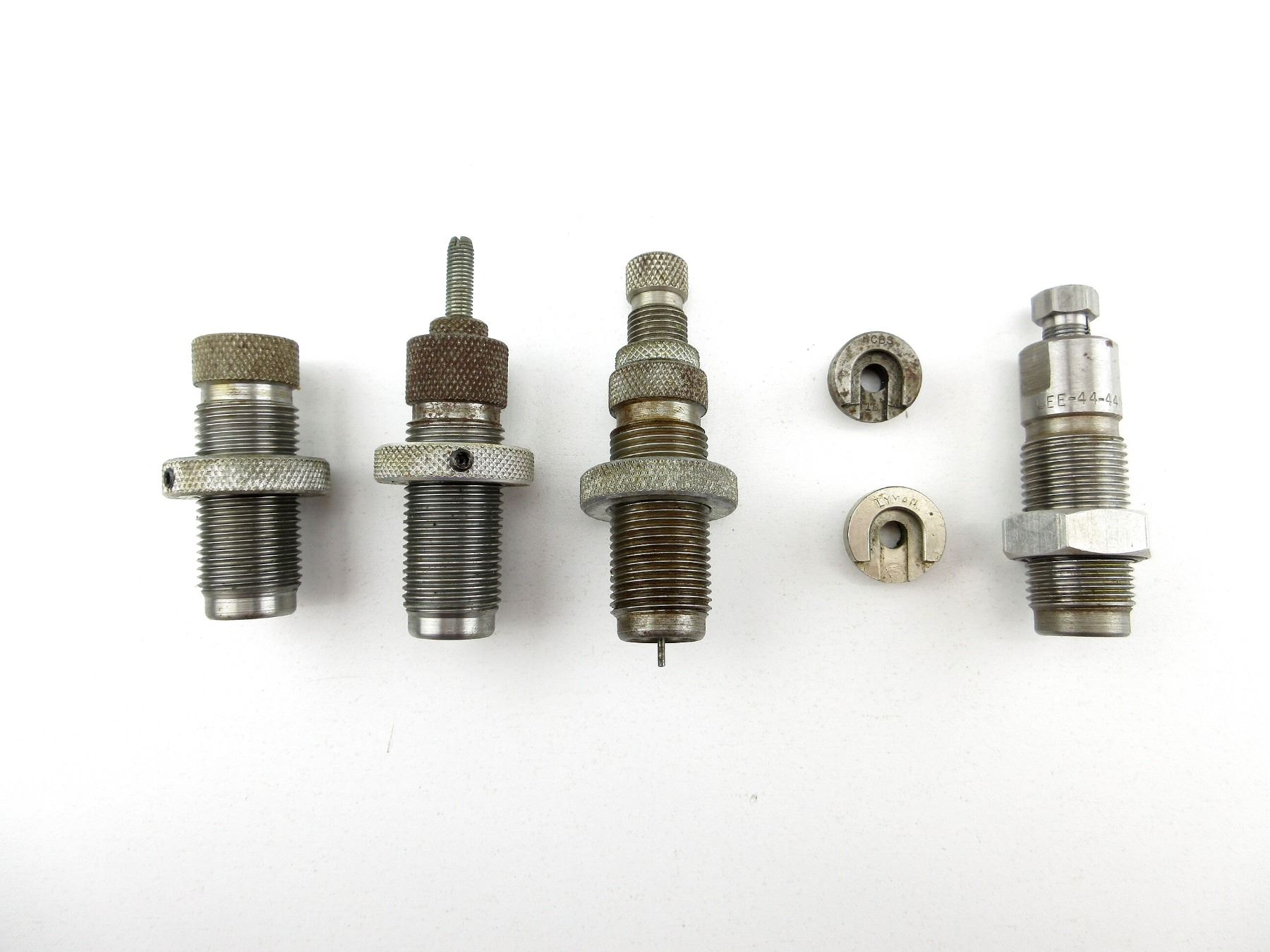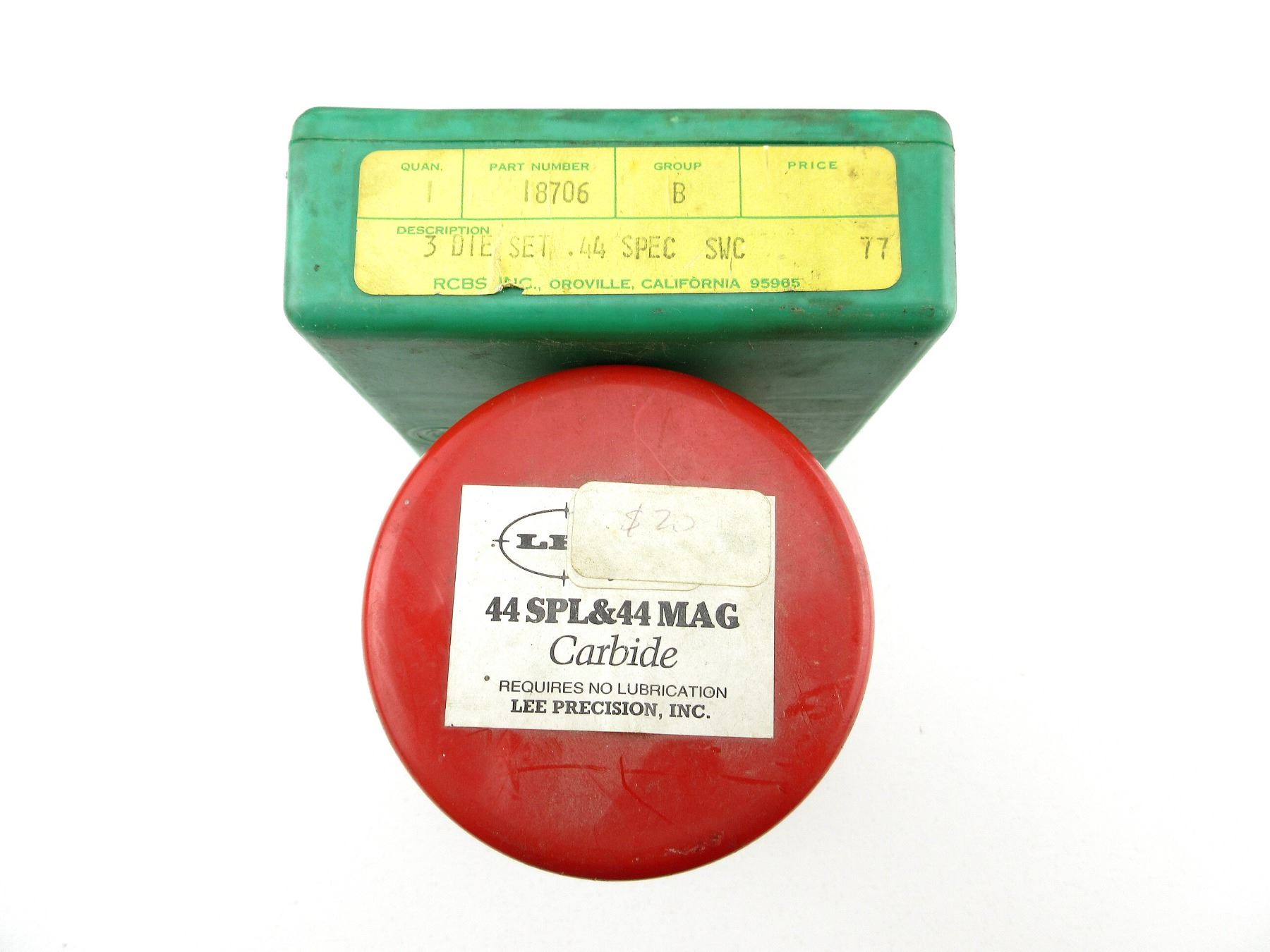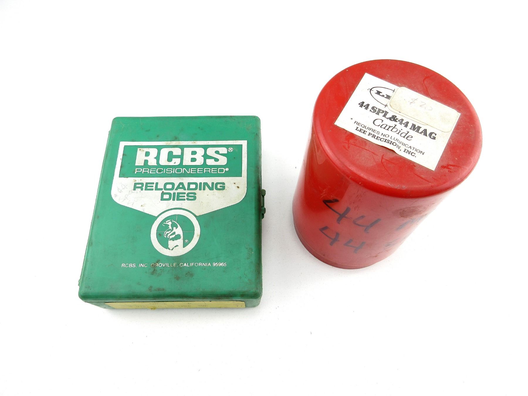 LOT INCLUDES; (1) LEE .44 SPL / .44 MAG 1-PIECE CARBIDE RELOADING DIE WITH RCBS #18 SHELL HOLDER & (1) RCBS .44 SPL 3-PIECE RELOADING DIES WITH LYMAN #X7 SHELL HOLDER. SEE PHOTOS.